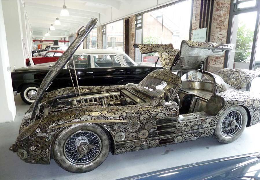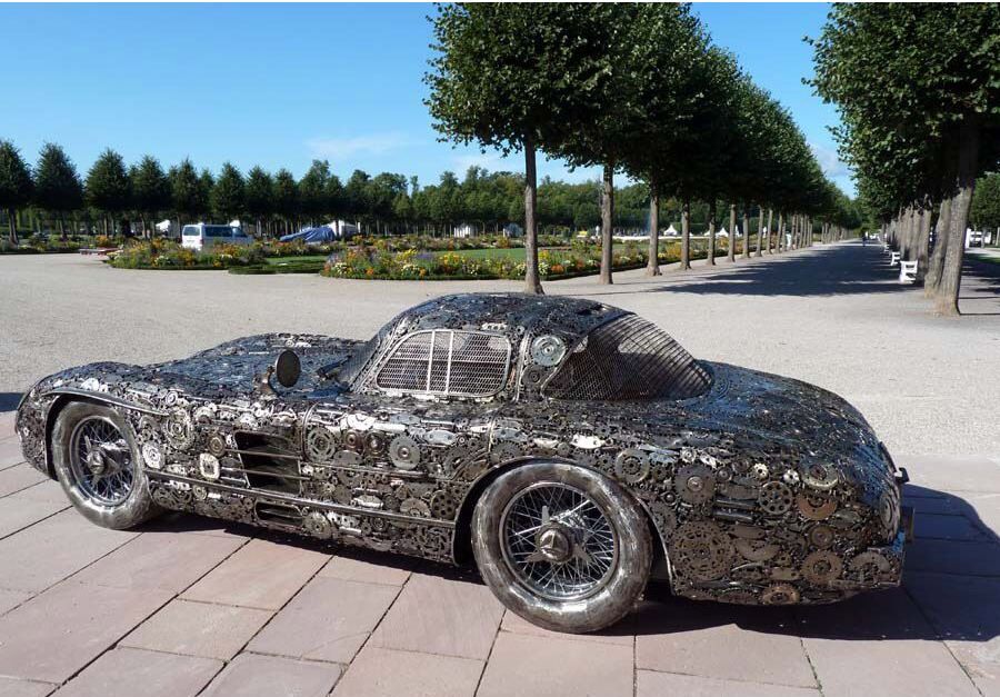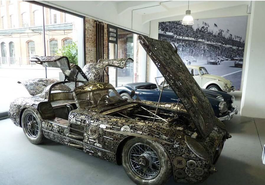 Ahora, casi 60 años después, un grupo de ingenieros ha querido revivir a uno de los vehículos emblema de Mercedes, con la fabricación de una replica que mantiene una notable diferencia con el original, y es que está fabricado a partir de 10.000 piezas de metal reciclado.