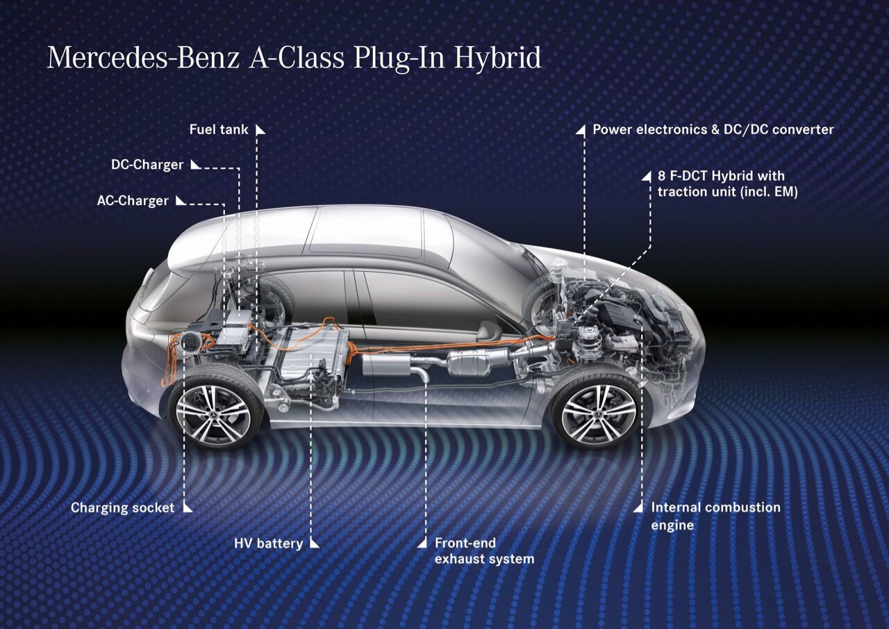 Este modelo que sale bajo el sello EQ Power de la marca alemana forma parte de la ofensiva de producto por la cual pretenden tener más de 20 híbridos en el mercado para 2020. En el sistema de propulsión del Mercedes A 250 e se combinan el nuevo bloque de gasolina turbo de cuatro cilindros y 1.33 litros y otra pequeña mecánica eléctrica. El resultado es una potencia conjunta de 218 CV y 450 Nm de par, situándose en la parte alta de la gama.