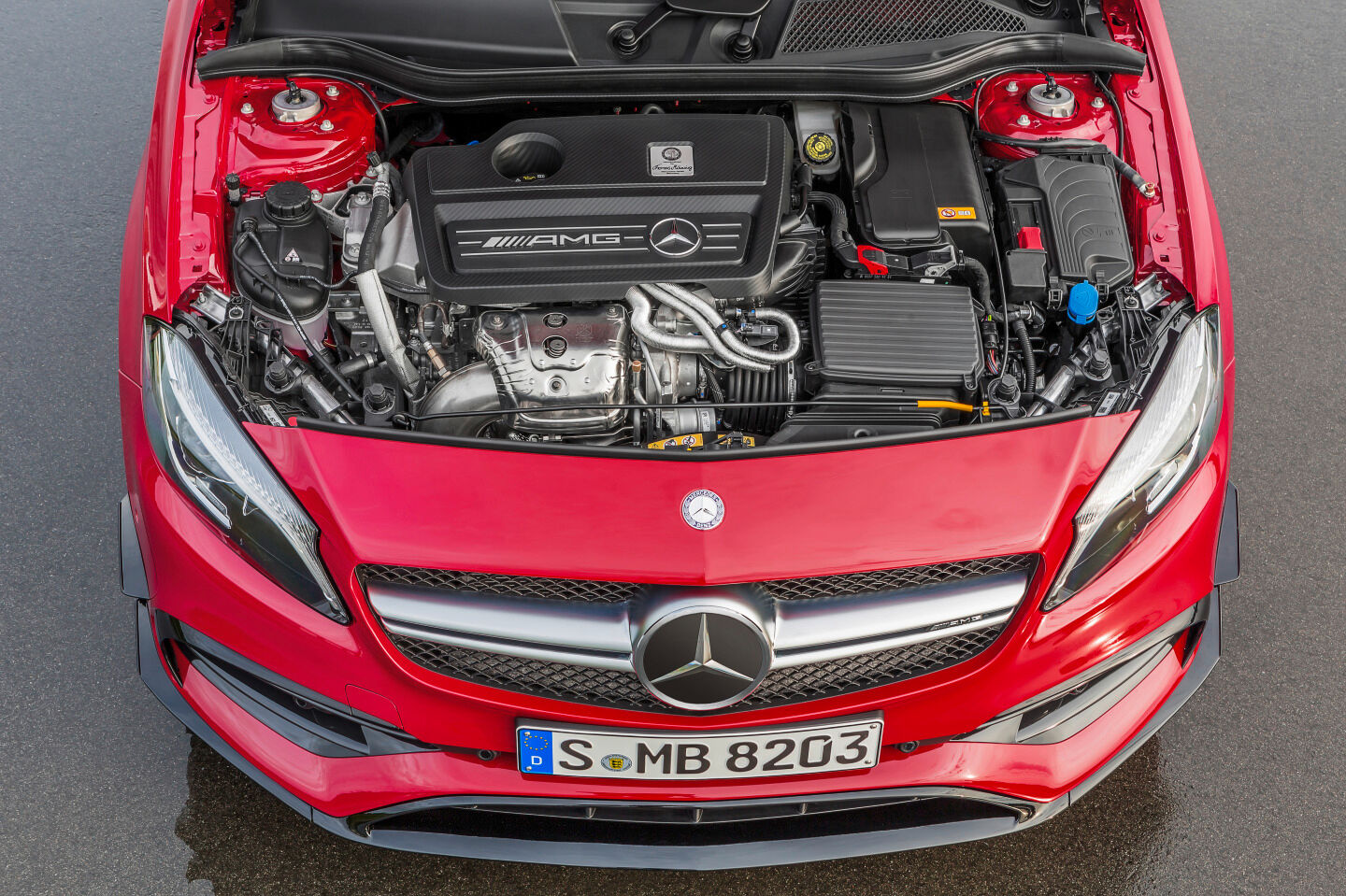 En Daimler se han puesto farrucos. Orgullosos de su A 45 AMG de 360 CV, potencia que colocaba a su motor de dos litros como uno de los que más sacaba por litro de cubicaje (de ahí que fuese destacado como uno de los mejores motores del año 2015).