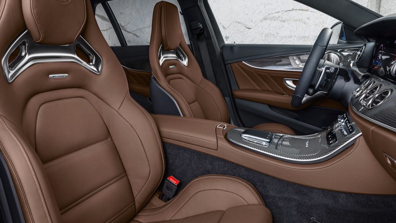 En el interior destaca la calidad y los elementos específicos. El Mercedes-AMG E 63 4Matic+ Estate monta unos asientos deportivos AMG tapizados en cuero napa, aunque opcionalmente se ofrecer los asientos AMG Performance. Otro elementos que destaca es el nuevo volante AMG Performance, que estrena diseño de radios dobles y controles táctiles. La tecnología sigue estando de la mano del sistema multimedia MBUX con su doble pantalla de 12,3 pulgadas y ahora suma algunos menús específicos en la versión deportiva.