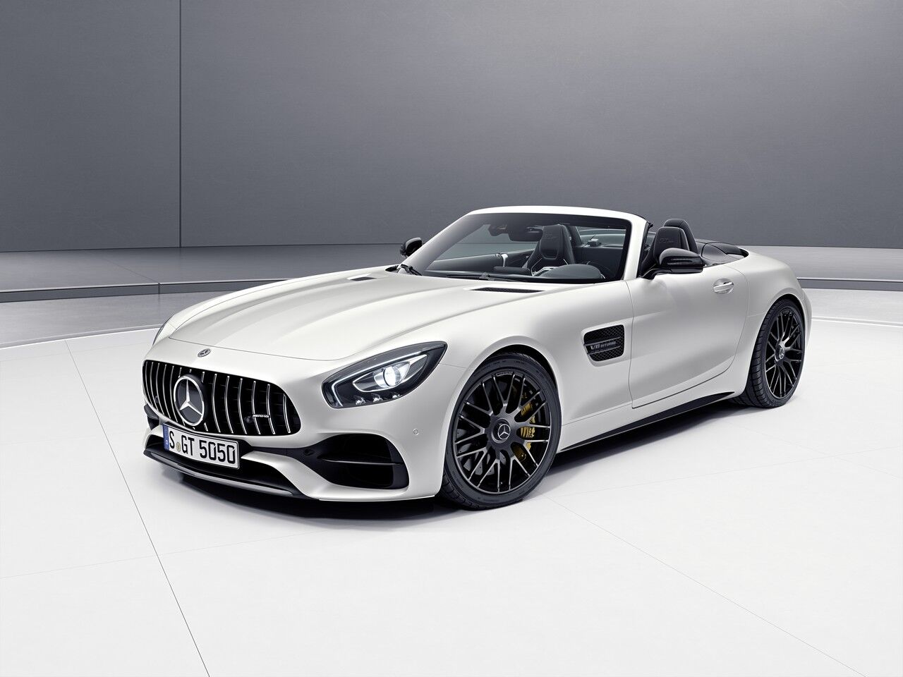 El más importante de esta serie es el Mercedes-AMG GT C Roadster Edition 50, que estará limitado a 500 unidades para todo el mundo. Podrá ser configurado con dos colores de carrocería designo graphite grey magno o designo cashmere white magno, con algunos elementos en negro cromado como el splitter delantero, la parrilla, los faldones laterales o el difusor trasero. También las llantas forjadas de AMG reciben este acabado.
