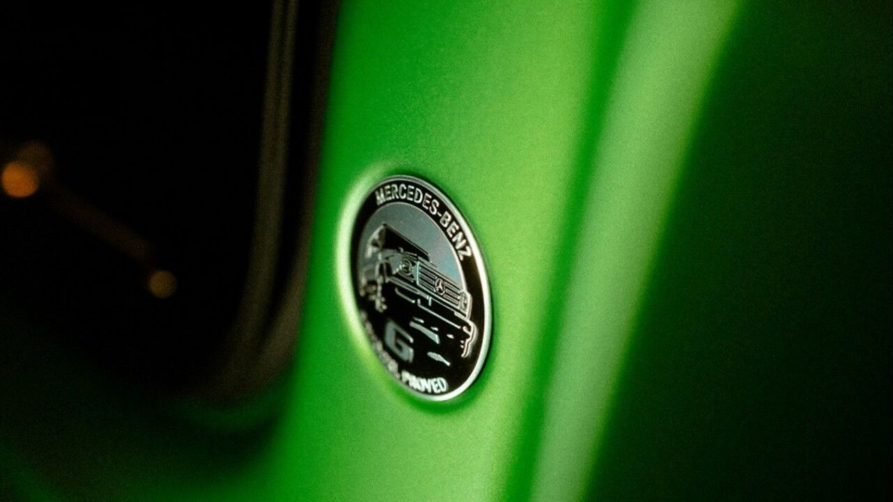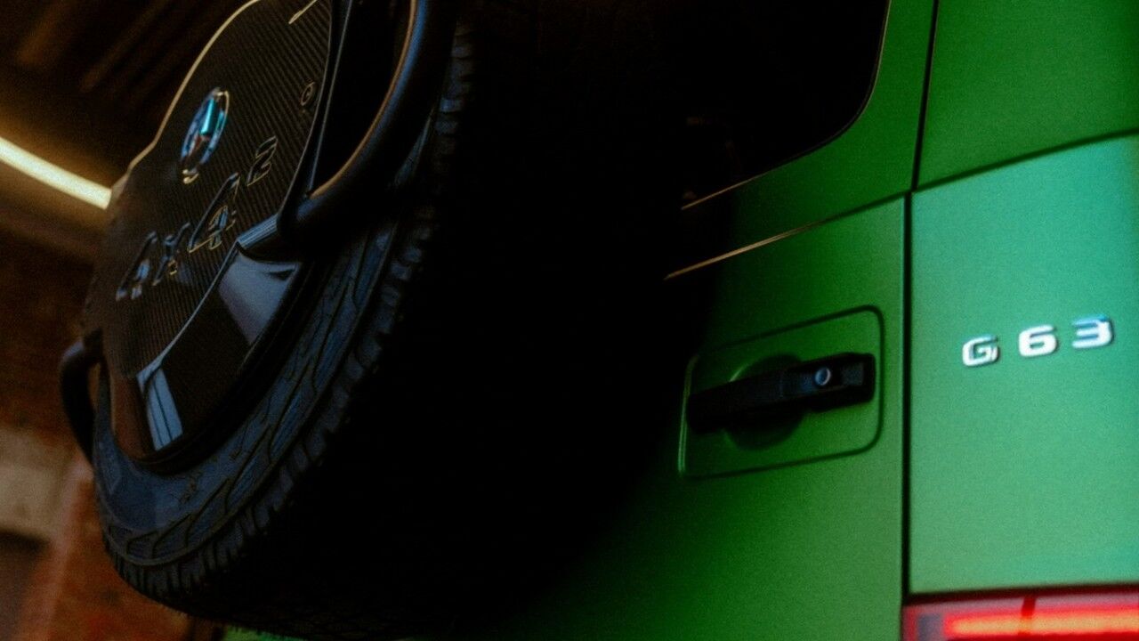 Para dar vida al nuevo modelo, Mercedes-AMG ha dotado al Clase G de enormes ruedas de 22 pulgadas calzadas con neumáticos todoterreno de 325 milímetros de sección, luces LED montadas en el techo, 40 colores exteriores, incluido el Green Hell mate, y otros muchos detalles de fibra de carbono alrededor de su cuadrada carrocería, incluida la cubierta de la rueda de repuesto de tamaño completo. El cromo y los detalles en negro mate o brillante se utilizan en otras partes de la carrocería a modo de paquete opcional.