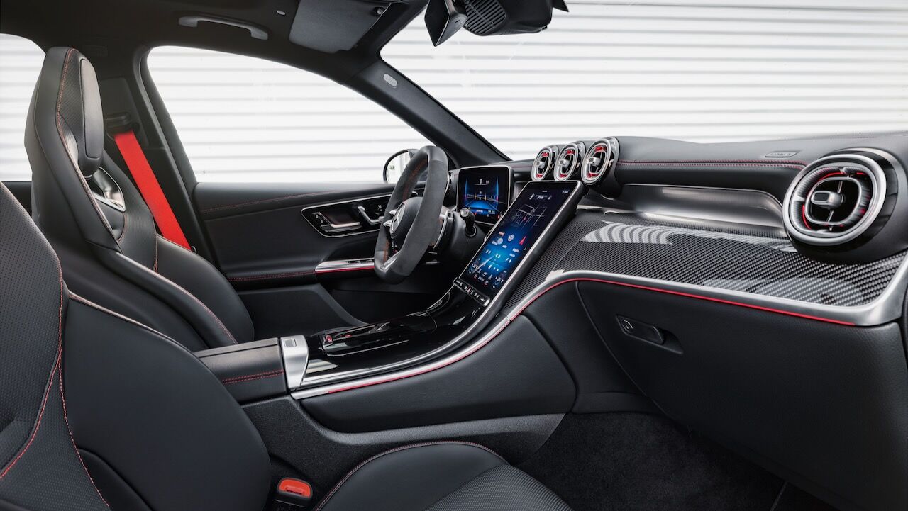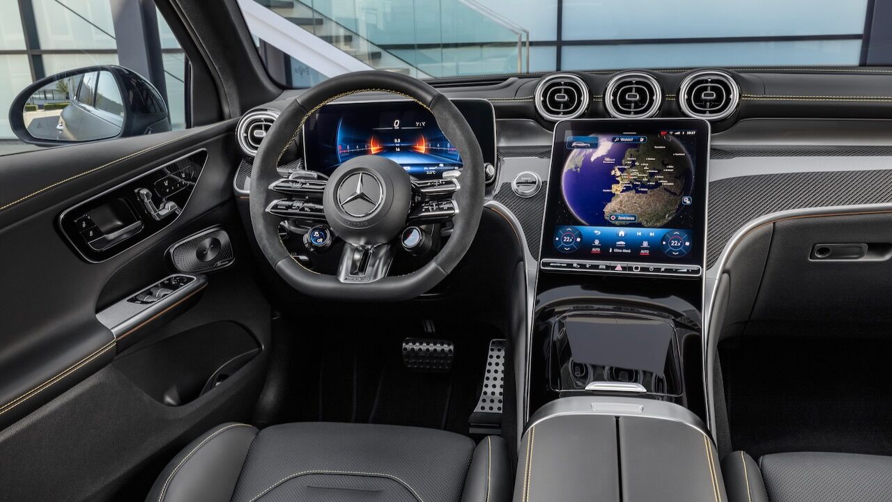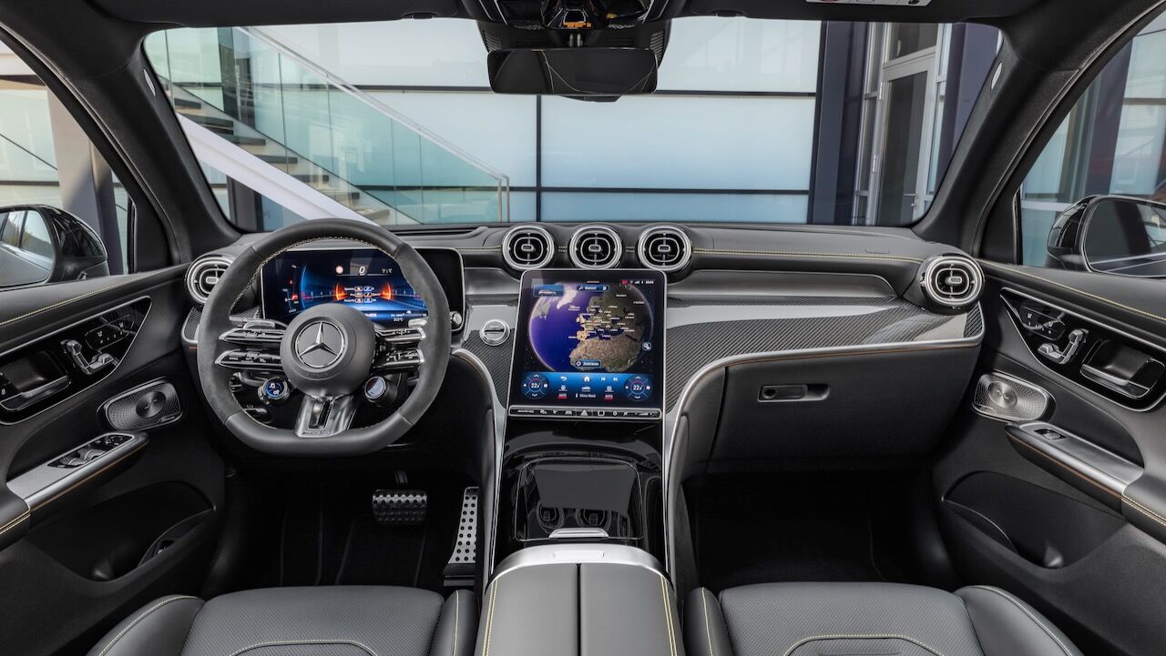 En el caso del GLC 63 S E Performance se sube la apuesta para tener llantas forjadas AMG de 21 pulgadas, un difusor más prominente con doble salida trapezoidal, tapicería mixta e incluso el sistema AMG Track Pace para registrar y analizar datos durante su uso en circuito, una especie de telemetría que es opcional en el otro.