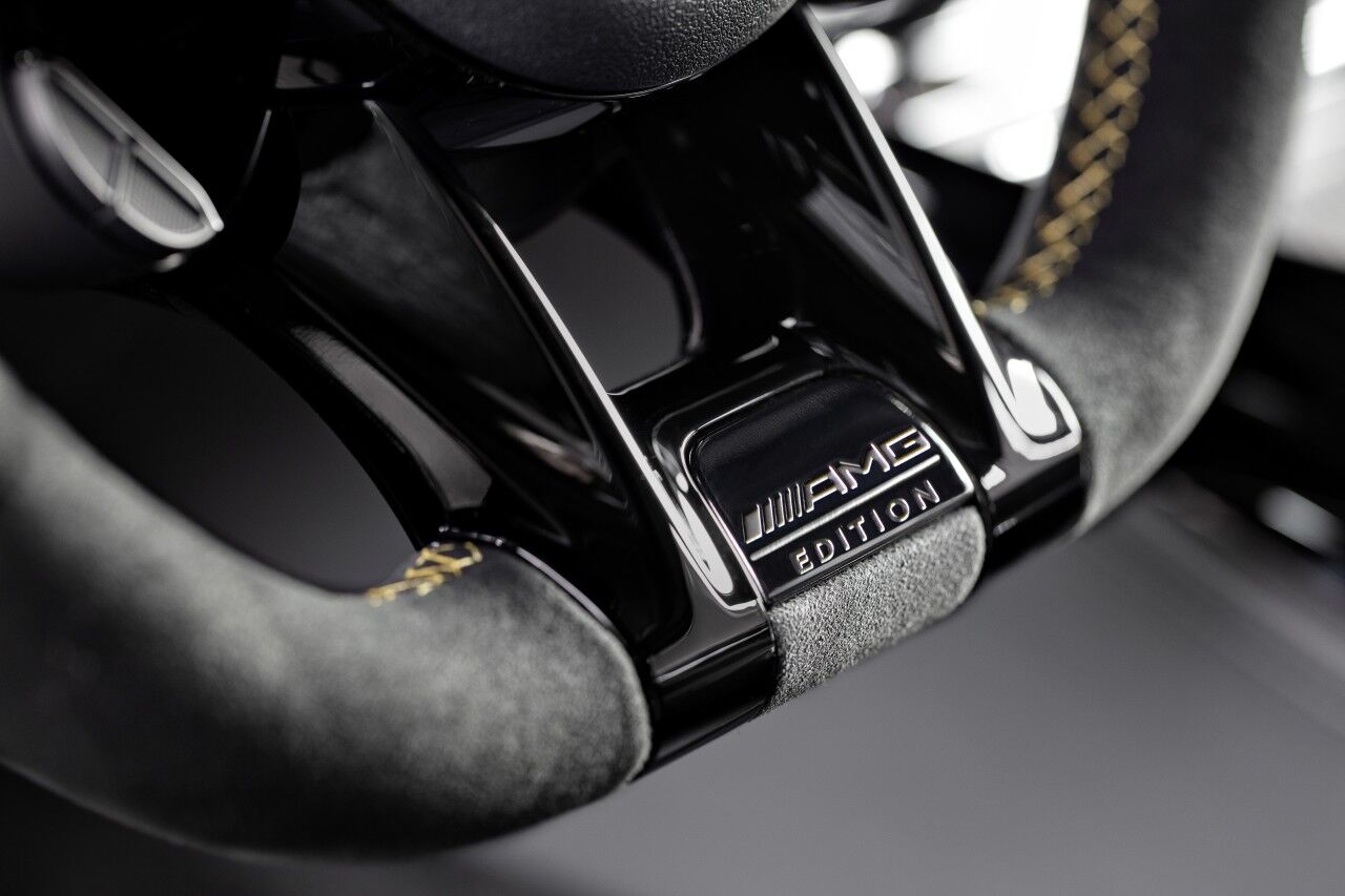 Esta aerodinámica es activa y se configura de manera inteligente a través del sistema Airpanel de la marca. Además el nuevo alerón fijo es capaz de generar 30 kg adicionales de carga aerodinámica a 300 km/h. A pesar de esa mayor carga, el coeficiente total es menor que en el modelo de serie. Siguiendo por el exterior destacan las llantas AMG forjadas de 21 pulgadas, mientras que en el interior se beneficia de los asientos deportivos AMG Performance y de algunos guarnecidos y molduras específicos.