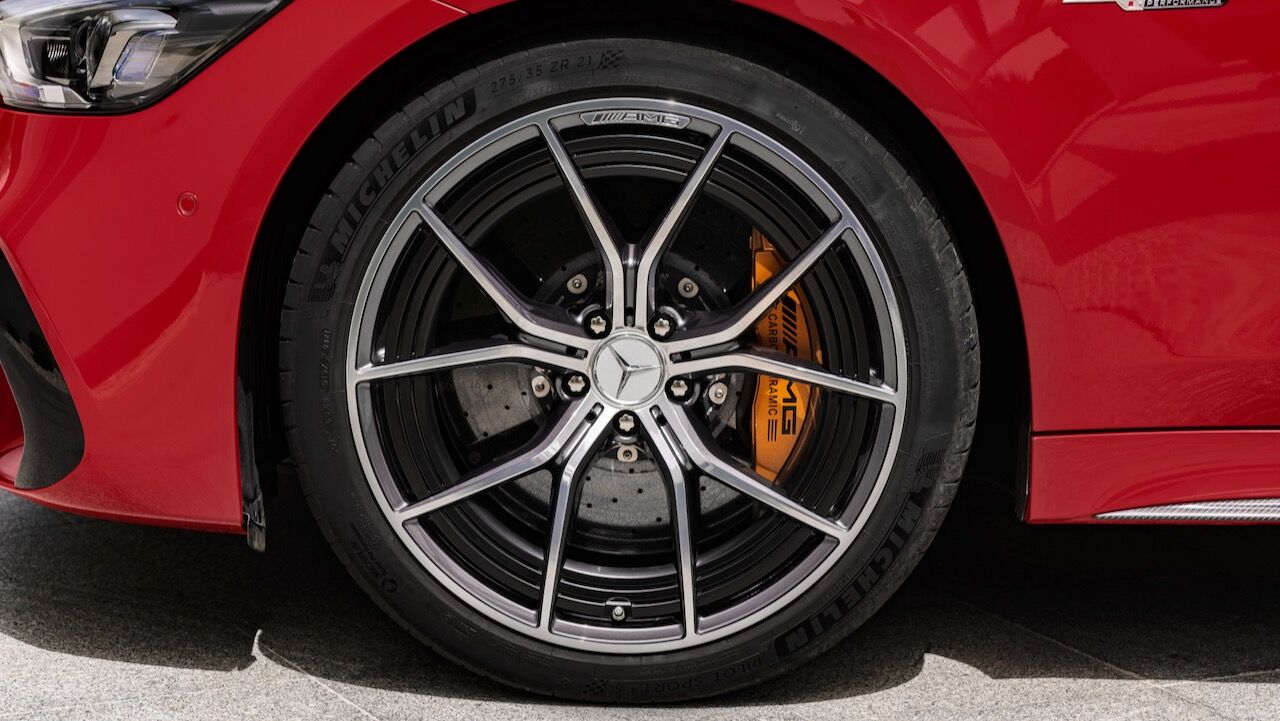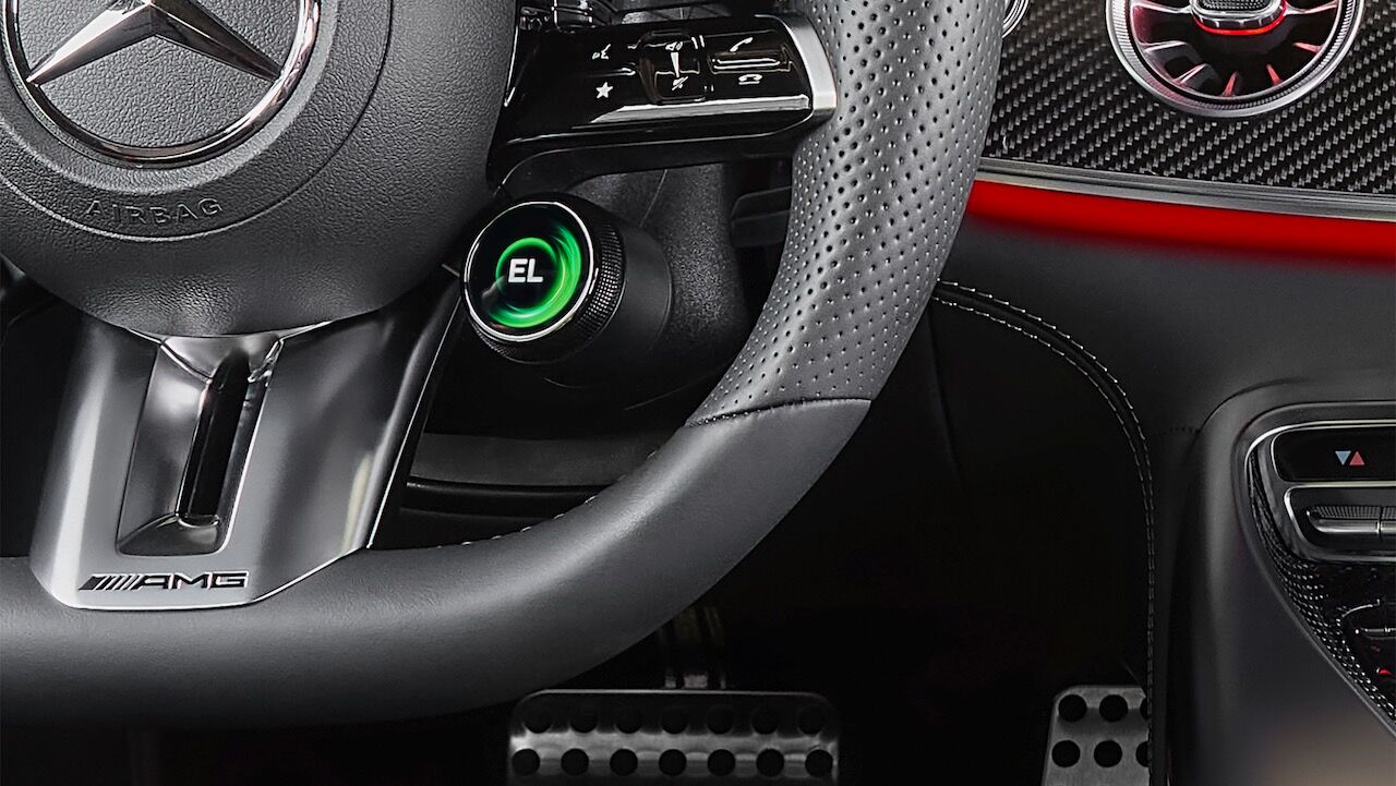El comportamiento dinámico de este ejemplar estará condicionado por los modos de conducción AMG Dynamic Select. Permite elegir entre Electric, Comfort, Sport, Sport+, Race, Calzada resbaladiza e Individual para adaptarse a todo tipo de situaciones. Modifica parámetros como la suspensión neumática multicámara del tren de rodaje AMG Ride Control+, que también es novedad y cambia su carácter de forma significativa. No pueden faltar los frenos cerámicos de alto rendimiento, con discos de 420 mm en el eje delantero y 380 mm en el trasero.