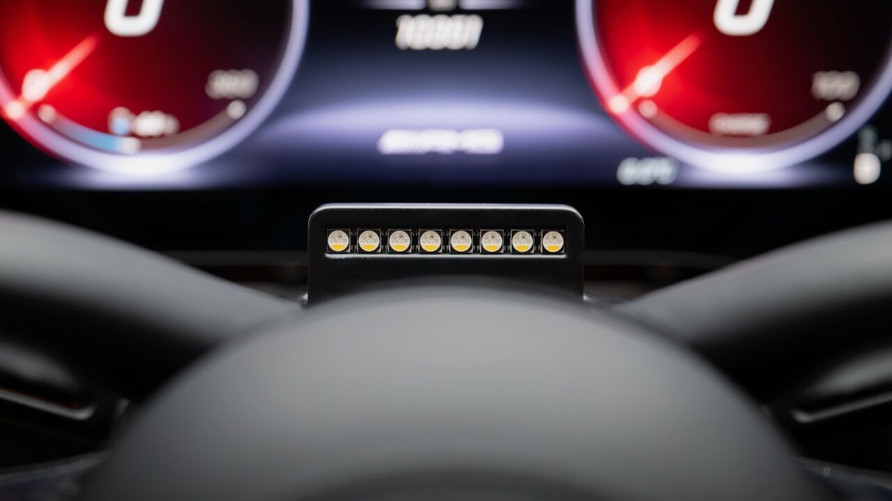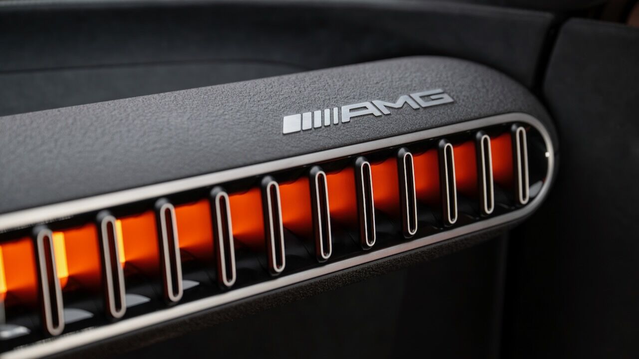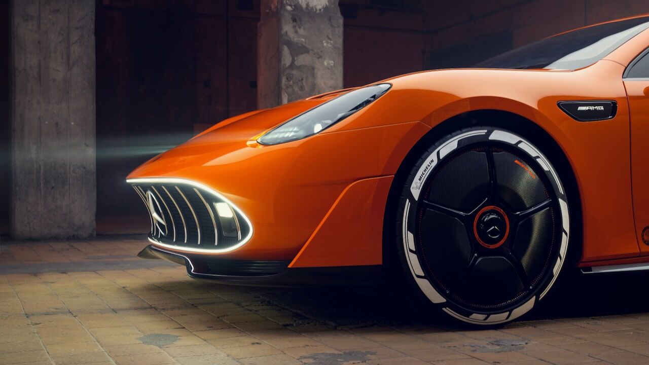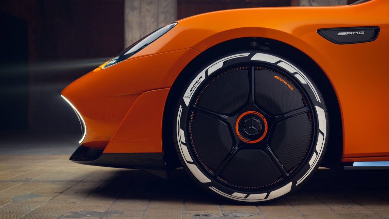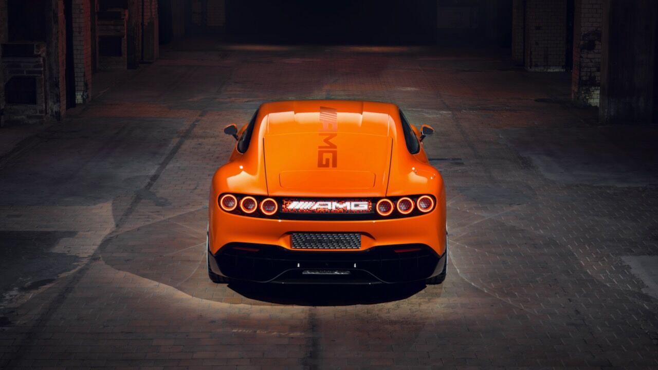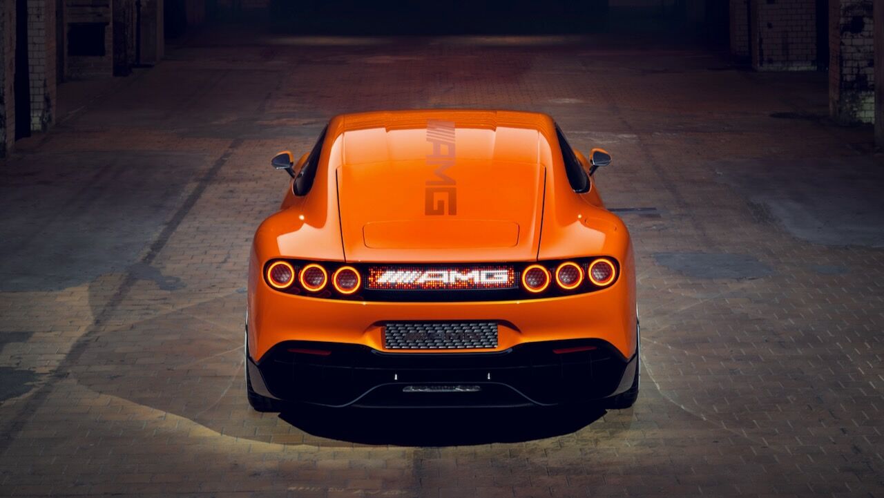 La silueta, con parabrisas inclinado y techo estilo coupé, enfatiza su carácter deportivo, mientras que las llantas de 21 pulgadas incorporan secciones móviles para optimizar refrigeración y aerodinámica. En la zaga, destaca un difusor de fibra de carbono, un alerón activo y un sistema de seis pilotos LED circulares. Todo rematado por el panel MBUX Fluid Light, que emplea más de 700 LED programables para comunicarse con el exterior mediante texto o animaciones.