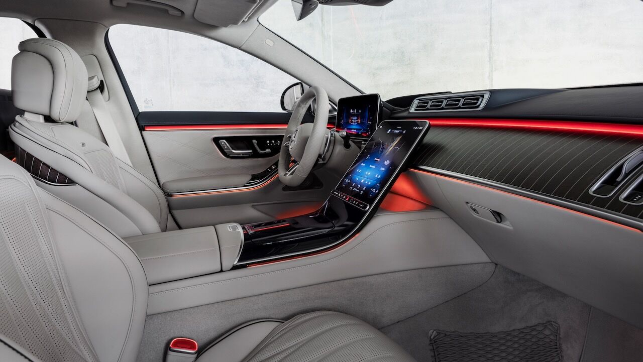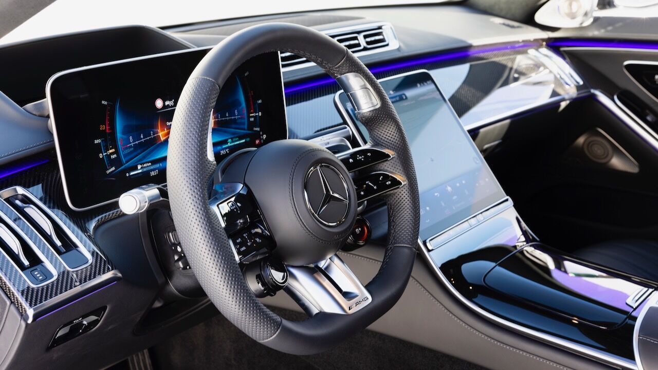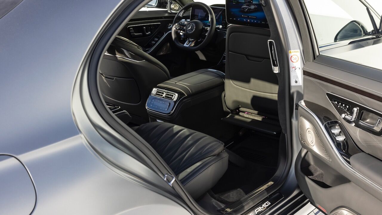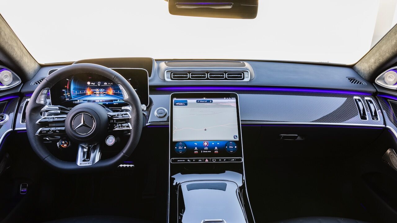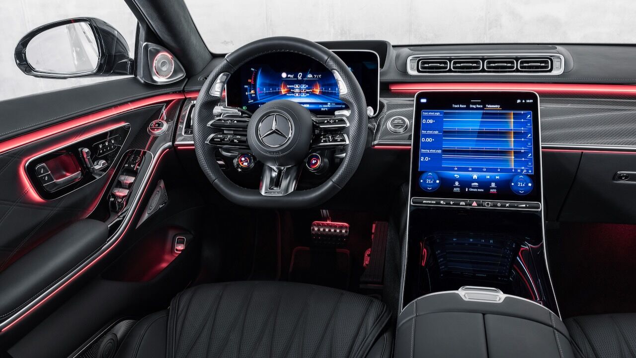 El habitáculo del Clase S más deportivo no se queda atrás, pues monta asientos con gráficos especiales AMG tapizados en cuero napa, además de molduras específicas y el volante AMG Performance. En el sistema multimedia MBUX se pueden encontrar menús y funciones exclusivas para este ejemplar, con detalles como el estilo de visualización Supersport.