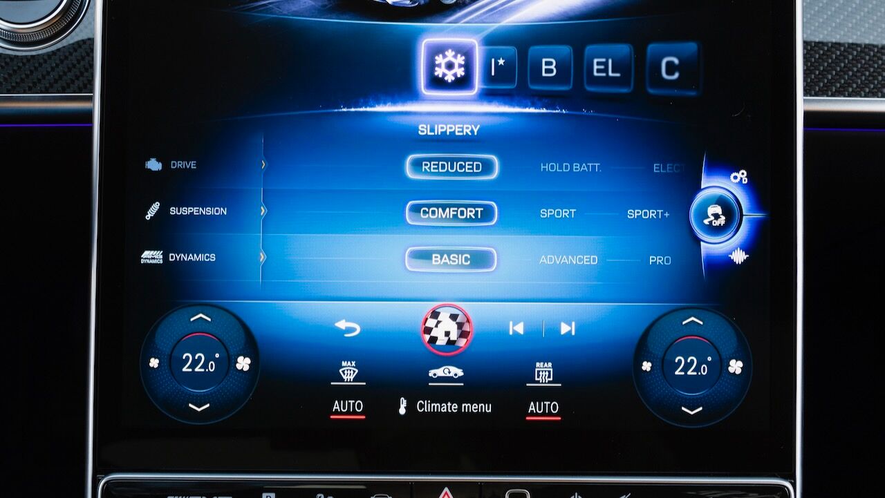 Más allá de la técnica, la berlina de AMG destaca por su comportamiento dinámico. Se pueden seleccionar siete programas de conducción a través del AMG Dynamic Select, permitiendo elegir entre Electric, Comfort, Battery Hold, Sport, Sport+, Smooth e Individual. También hay cuatro niveles de recuperación de energía. Y por supuesto, monta el tren de rodaje AMG Ride Control+ para ajustar la suspensión adaptativa a esos modos. No falta tampoco una estabilización activa del balanceo de serie o la dirección paramétrica AMG con tres niveles y dirección del eje trasero.