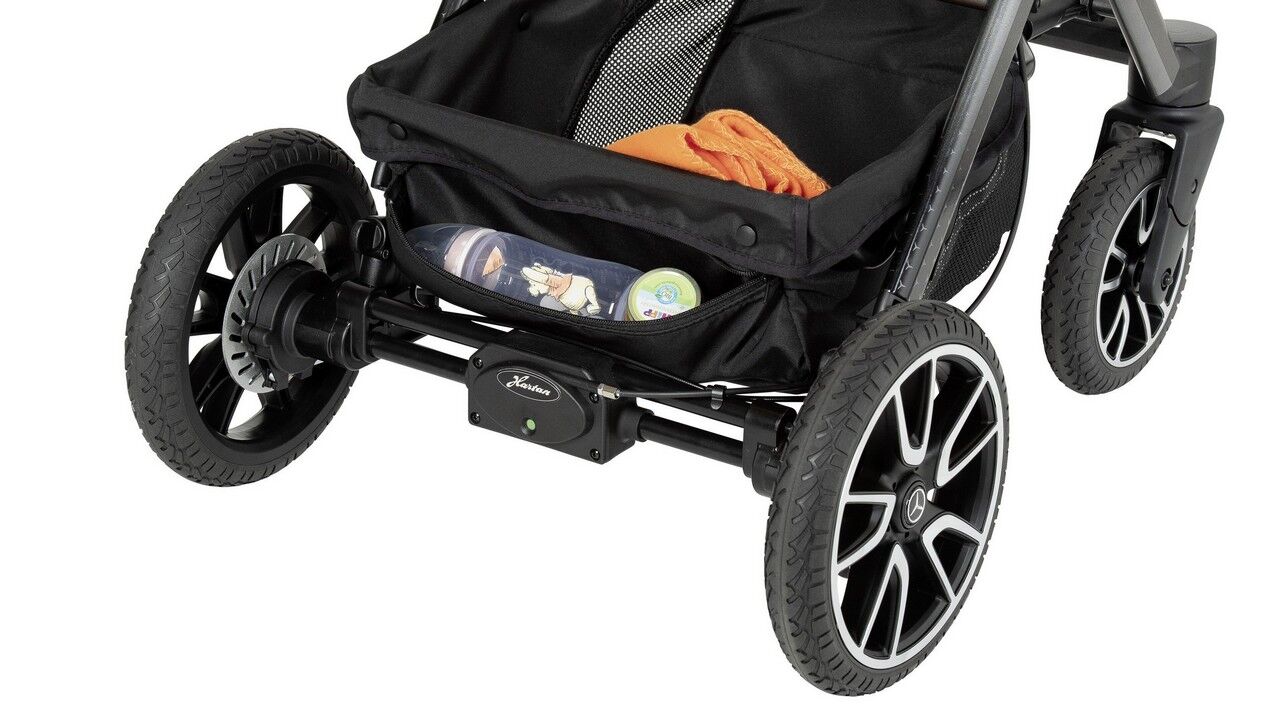 Todos los diseños interiores son de algodón orgánico certificado, mientras que la estructura de aluminio particularmente ligero garantiza una gran “estabilidad” y “maniobrabilidad”. De hecho, los carritos de Mercedes-Benz y Hartan cumplen con los más altos estándares en términos de selección de materiales y calidad de fabricación, y llevan el sello de aprobación TÜV. El freno de mano de serie, el sistema de arnés de cinco puntos con una hebilla magnética y los reflectores en el mango regulable en altura también garantizan la máxima seguridad.