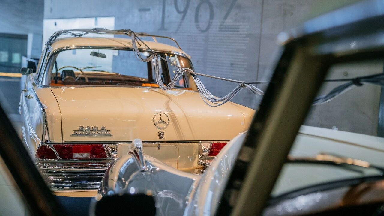 En el caso que nos atañe, los datos del sensor se registraron en el coche de medición a través de una cinta magnética para evaluarse después con más calma. El prototipo de delante podía transmitir 14 valores medidos simultáneamente al laboratorio móvil de Mercedes-Benz, lo que no es un mal valor para la época. Cada pedacito de espacio en la parte trasera del 300 se utiliza para los dispositivos sensibles, siempre seleccionados específicamente para cada programa de medición respectivo y con un generador a bordo para suministrarles electricidad.