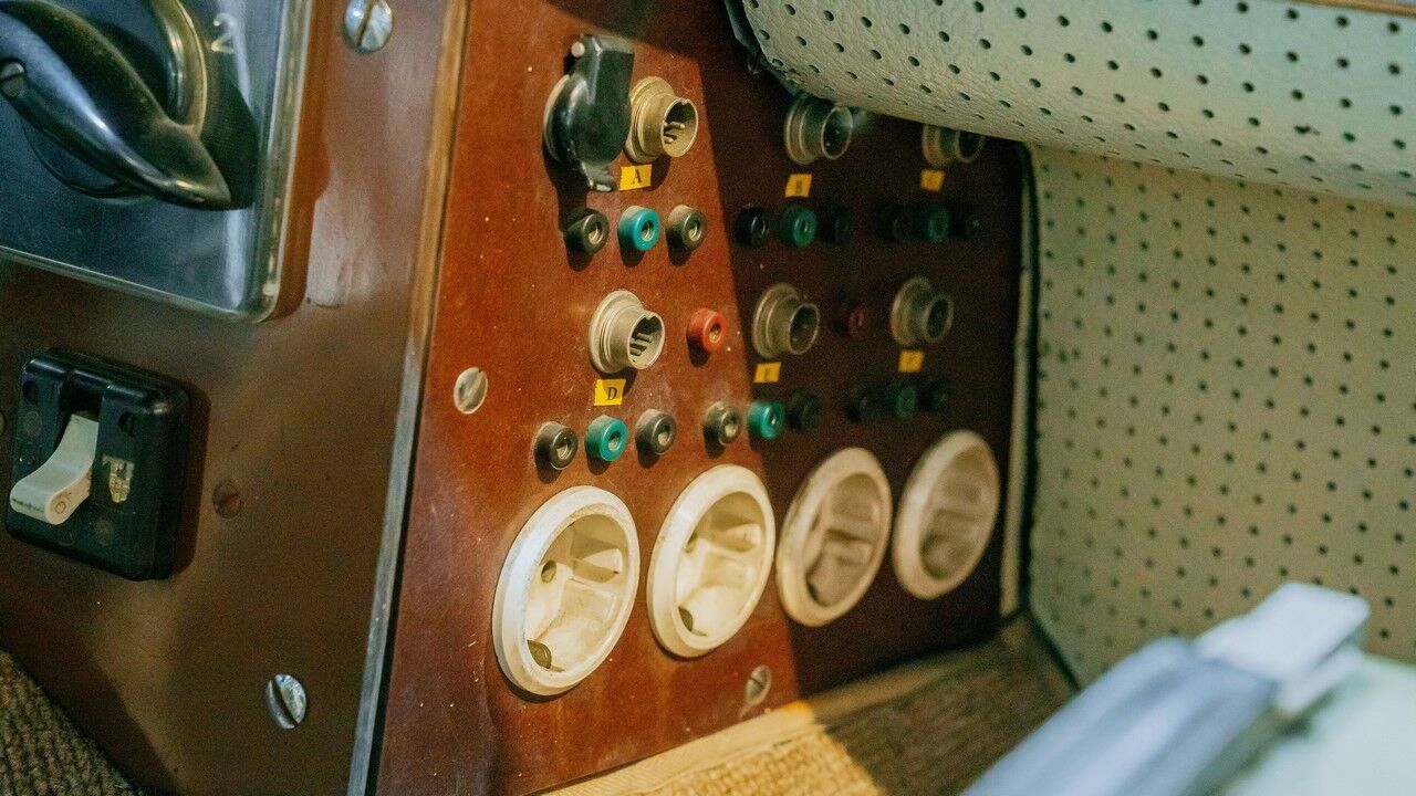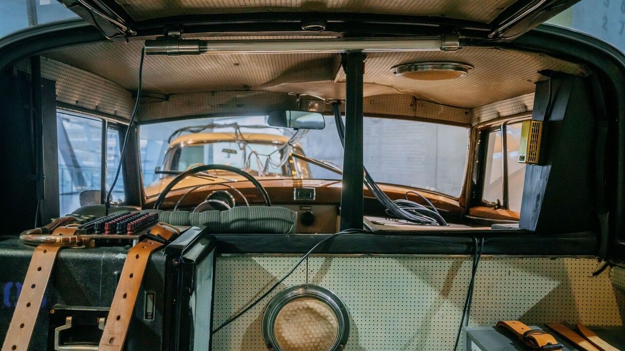 Una mirada al interior del laboratorio rodante de Mercedes-Benz muestra que los ingenieros no disfrutaban de la máxima comodidad precisamente. El espacio para la cabeza era limitado y una pareja de asientos tienen respaldos de unas sillas veraniegas con mimbre tejido. Además, el acristalamiento, probablemente, no solo dejaba entrar mucha luz en los días soleados, sino que también creaba un clima de invernadero, algo que, a buen seguro, no debería de ser nada agradable. Al menos la carrocería tiene aberturas de ventilación en los laterales.