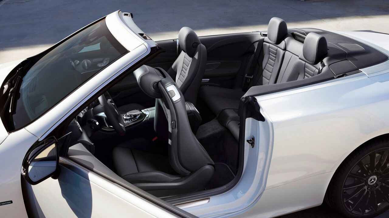 Disponible de momento para el Coupé y Cabrio (el sedán y el familiar les seguirán más adelante), este modelo de edición especial se basa en el exitoso paquete “AMG Line”. Para darle a la línea conservadora de la Clase E una apariencia más agresiva, el “Night Package” de Mercedes luce la elegante parrilla diamantada, pero con pasadores negros, igual que las salidas de escape y el juego de llantas de aleación AMG con acabado en negro brillante. Los marcos de las ventanillas y el sutil alerón sobre el maletero están acabados en el mismo tono oscuro.