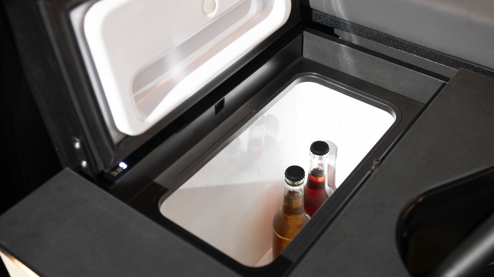 Algo que quizá no llegue a producción, o que a lo sumo llegará como extra, es el panel solar en el techo abatible. La idea es que el módulo de acampada pueda autoabastecerse de energía mientras esté parado, sin reducir la autonomía. Además cuenta con una batería adicional en un cajón del asiento, que puede extraerse para cargarse en el domicilio o en la zona de acampada.