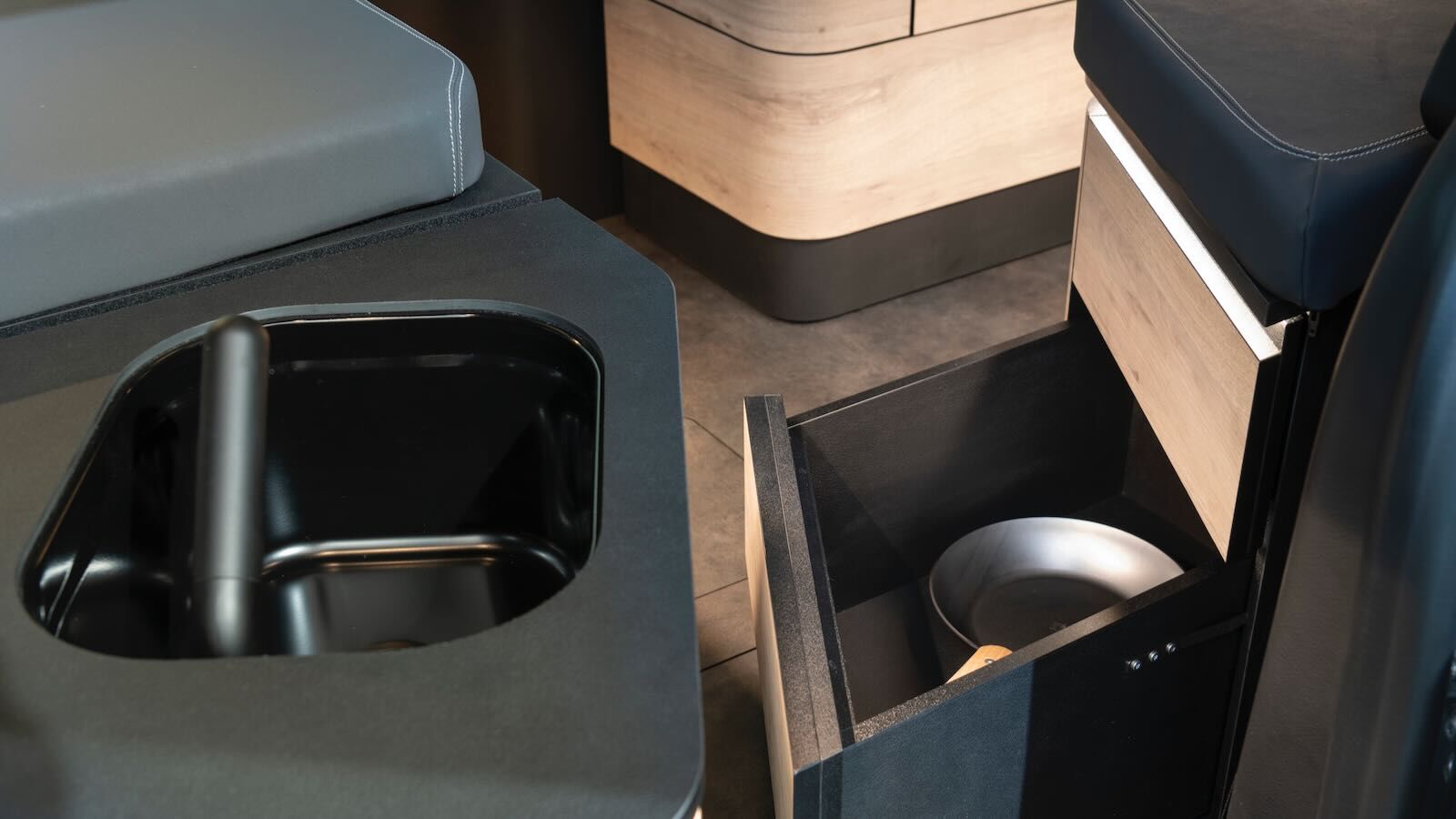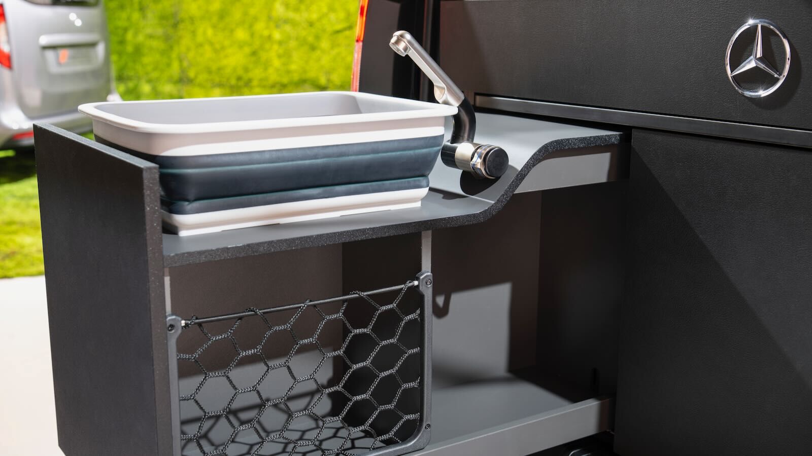 Al igual que la Mercedes Clase T Marco Polo, se trata de un módulo de camperización, desarrollado por Brabus para vender una filosofía aventurera de esta furgoneta eléctrica que justifique el sobreprecio respecto de otras alternativas. Integrado en el maletero, incluye cajones, nevera, fregadero con grifo y depósito de agua de 12 litros o un fogón con gas. La marca indica que todo estemobiliario puede retirarse por dos personas en menos de 5 minutos y usar el coche como vehículo en el día a día.