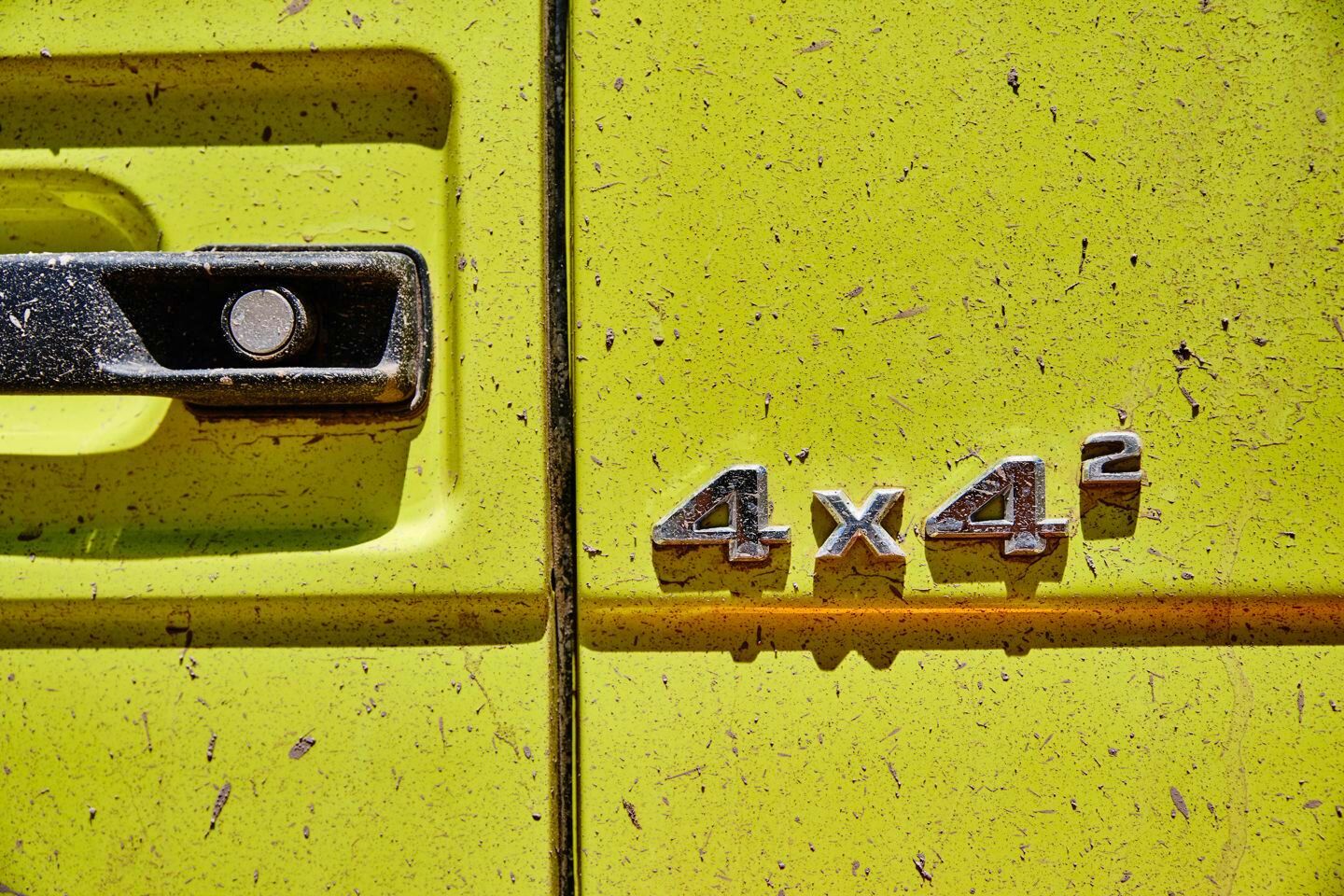 En el Mercedes 500 4×4² toma la base del Clase G. Luego han tomado bastantes cosas del G 63 AMG 6×6, para convertirlo en el todoterreno definitivo: ejes portantes, suspensiones con doble muelle y amortiguador en cada eje, control continuo de la amortiguación con modo deportivo, las vías más anchas (nada menos que 30 centímetros más para plantarse en 2,10 metros) y las llantas de 22 pulgadas (con neumáticos 325/55 R22).