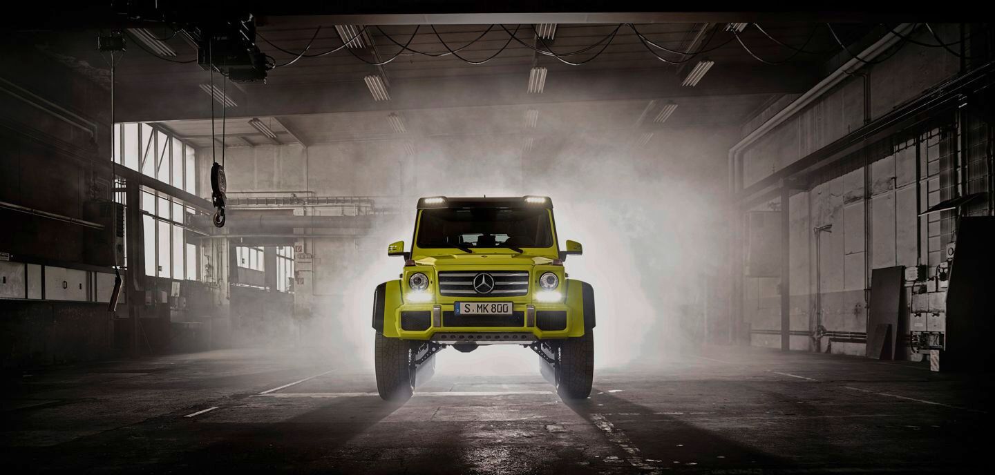 Si hay un todoterreno de lujo especial ese es el Mercedes Clase G. Se trata de uno de los coches más antiguos que se fabrican, pero la firma de Stuttgart ha sabido bañarlo en la fuente de la eterna juventud para que siga conquistando corazones. Cuando uno pensaba que, más allá de las versiones G 63 AMG y G 65 AMG que suben dunas en los países árabes, sorprendió a propios y extraños con el imponente G 63 AMG 6×6 de tres ejes. Ahora, con el Salón de Ginebra que empieza ya mismo, el fabricante ha llevado esta singular propuesta a un chasis convencional, bautizando al resultado como Mercedes G500 4×4².