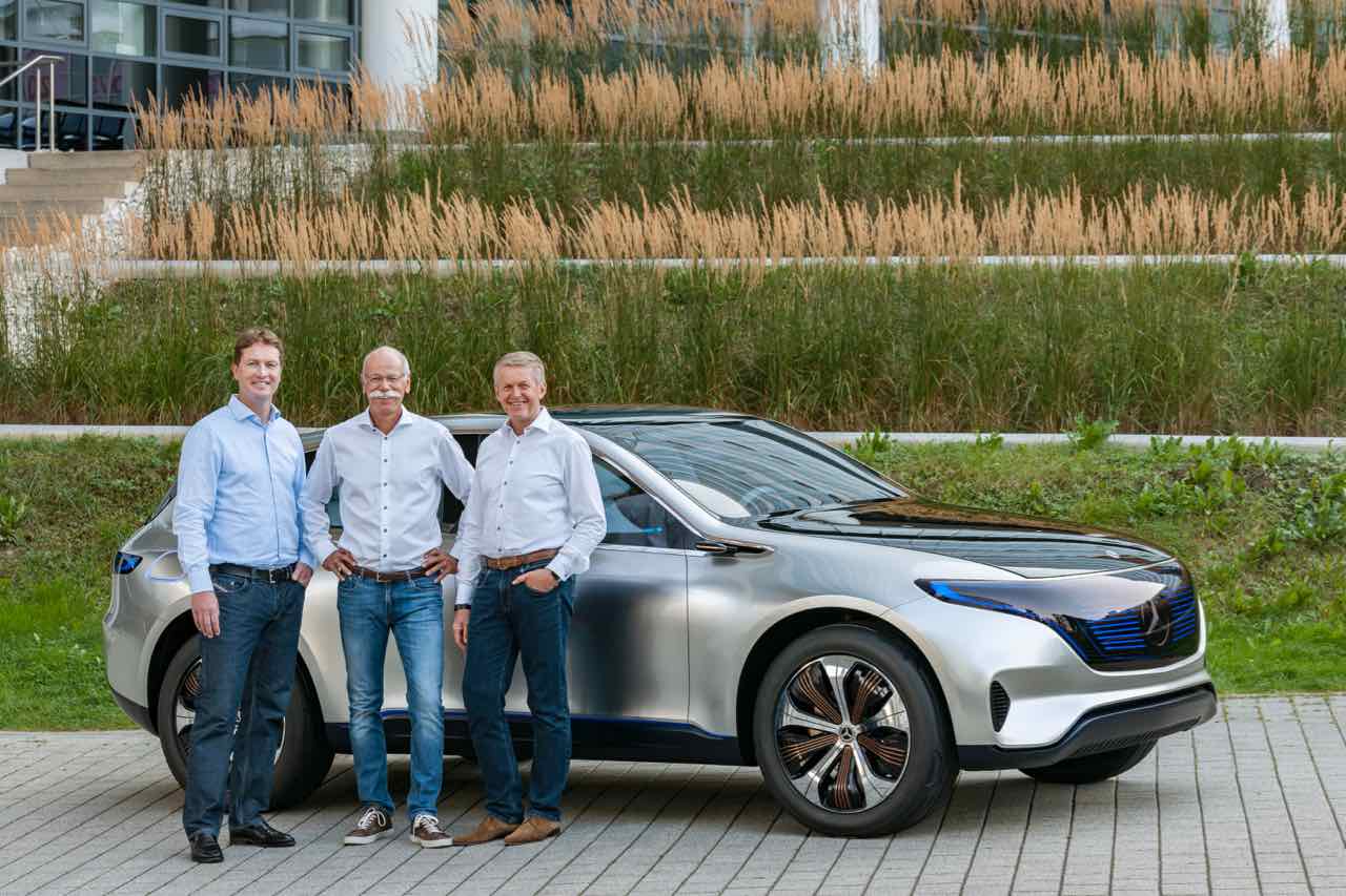 Ola Källenius, Member of the Board of Management of Daimler AG, Mercedes-Benz Cars Marketing & Sales, Dr. Dieter Zetsche, Chairman of the Board of Management of Daimler AG and Head of Mercedes-Benz Cars and Prof. Dr. Thomas Weber, Member of the Board of Management of Daimler AG, Group Research and Mercedes-Benz Cars Development with the Generation EQ;