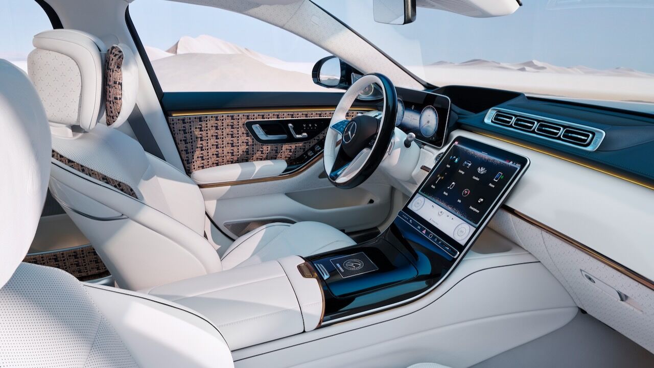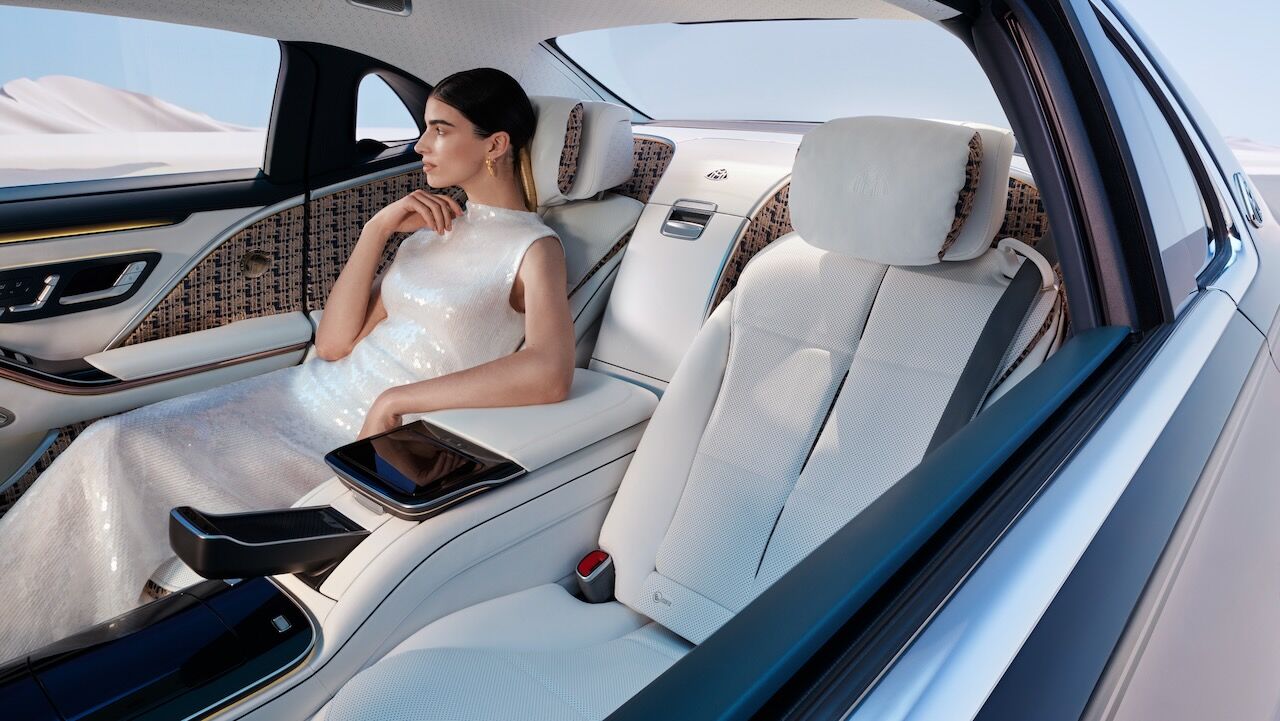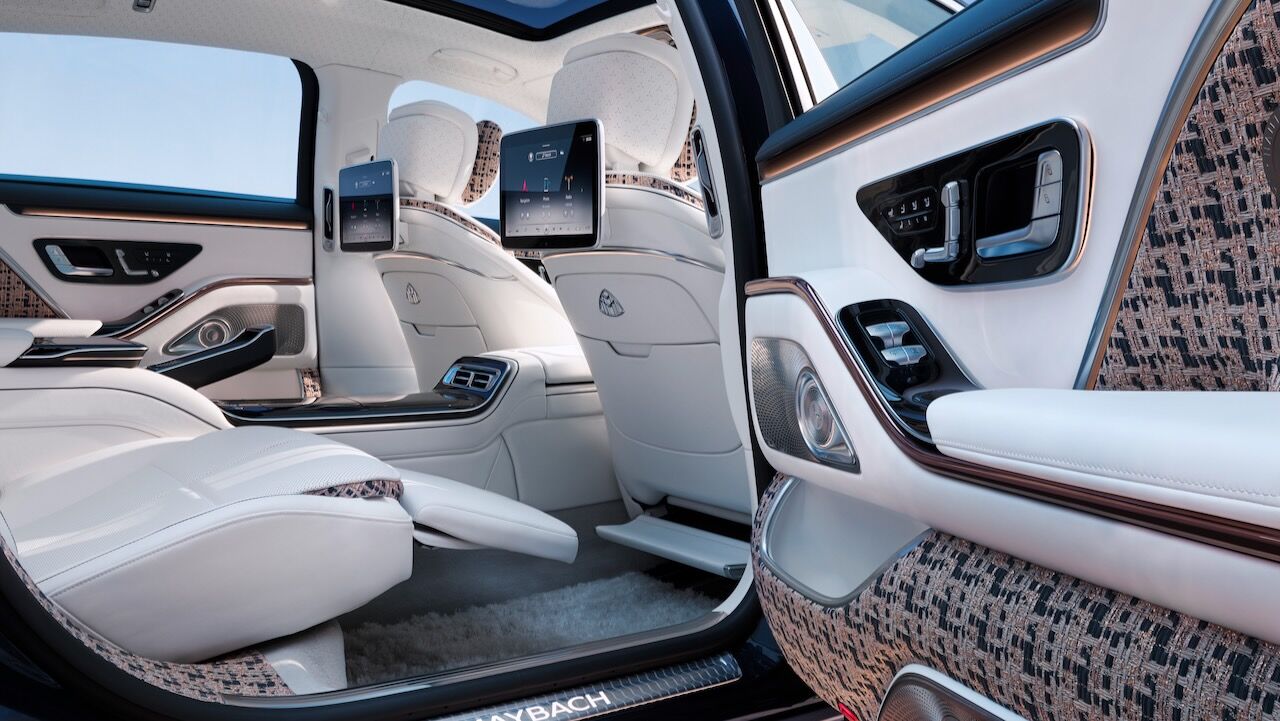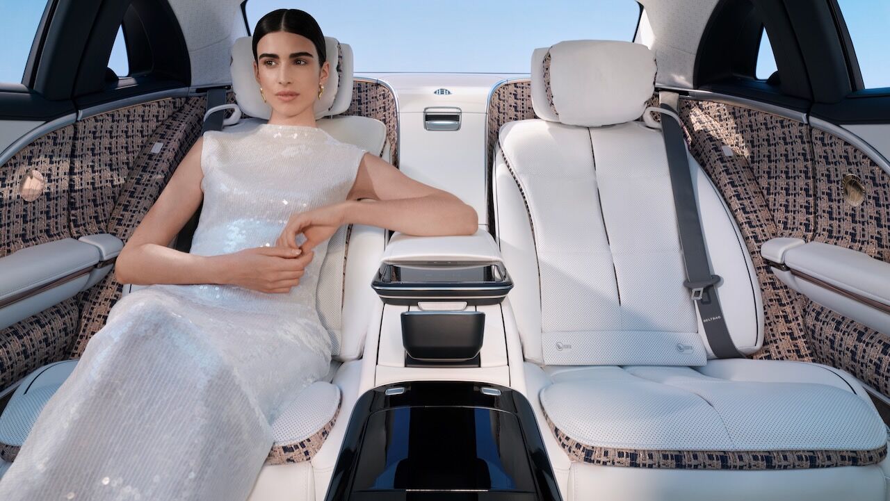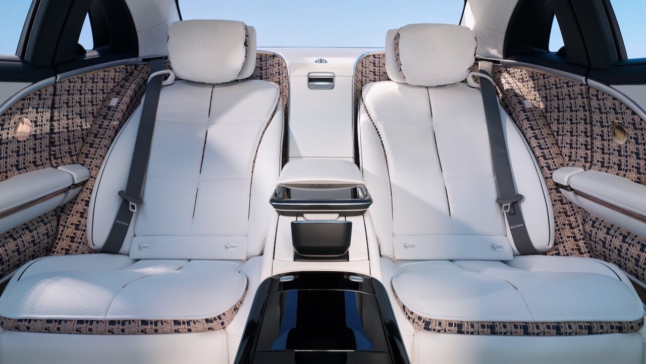 No faltan en el Mercedes-Maybach Clase S Haute Voiture los detalles cromados o las llantas específicas. Tampoco una proyección de luz animada cada vez que se abren las puertas para dar paso al interior. Su habitáculo incorpora los mismo colores que se ven en el exterior, aunque se presta más atención por el detalle y se suman materiales de lujo. Hay una tapicería de tejido bouclé inspirado en el mundo de la moda que se intercala con cuero de color blanco en los asientos y cojines. Las alfombrillas están hechas de lino y mohair, mientras que hay molduras que ponen el acento en oro rosa.