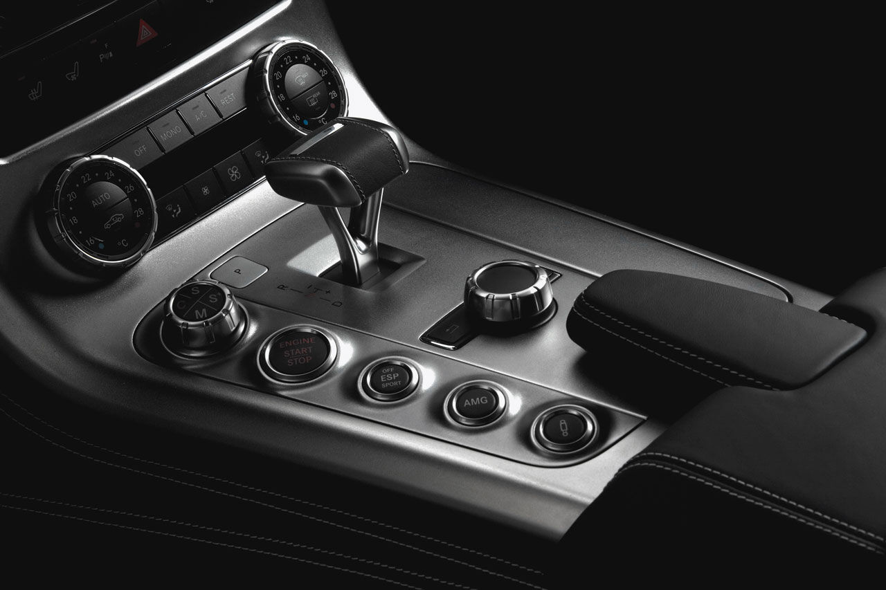 Por lo que respecta a la transmisión, el SLS incorpora un nuevo cambio de 7 velocidades Speed Shift DCT AMG con cuatro programas de cambio y función Race Start. Este sistema le permite cambiar a una marcha más larga, aprovechando al máximo la capacidad de aceleración, y obtener una mayor capacidad de respuesta.