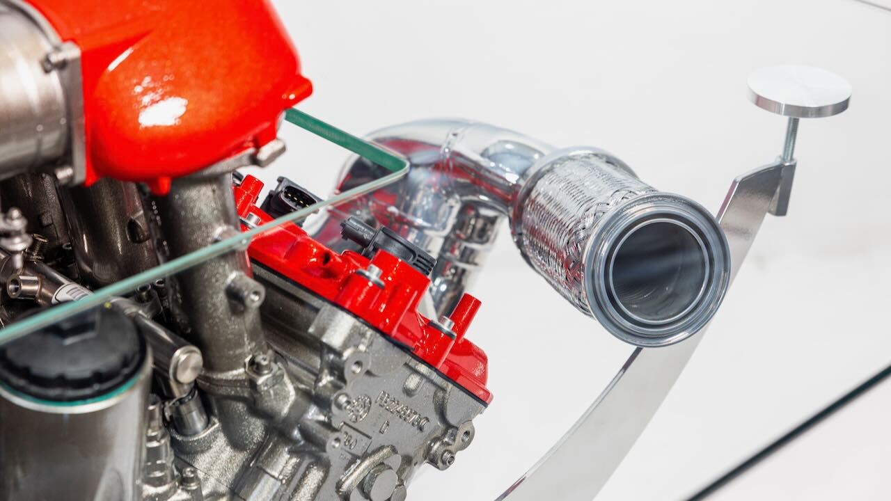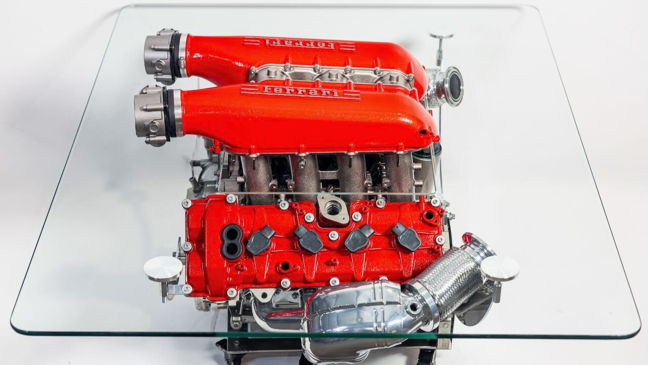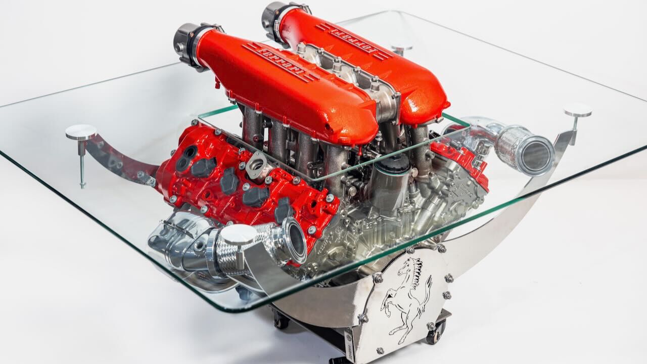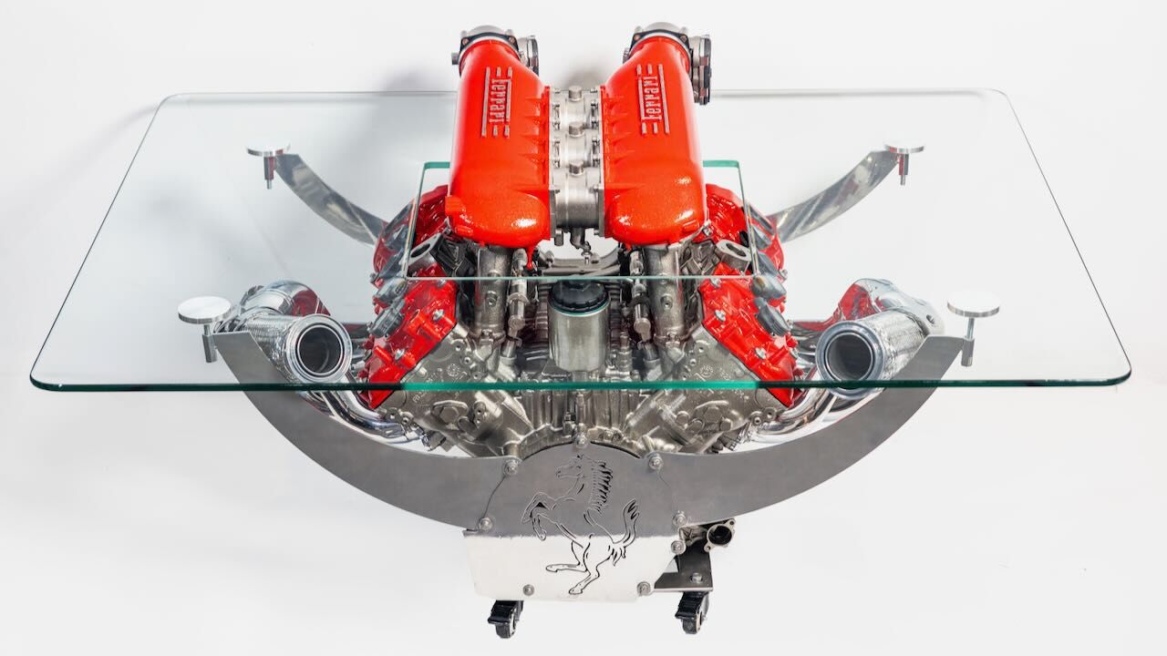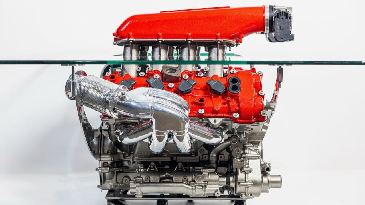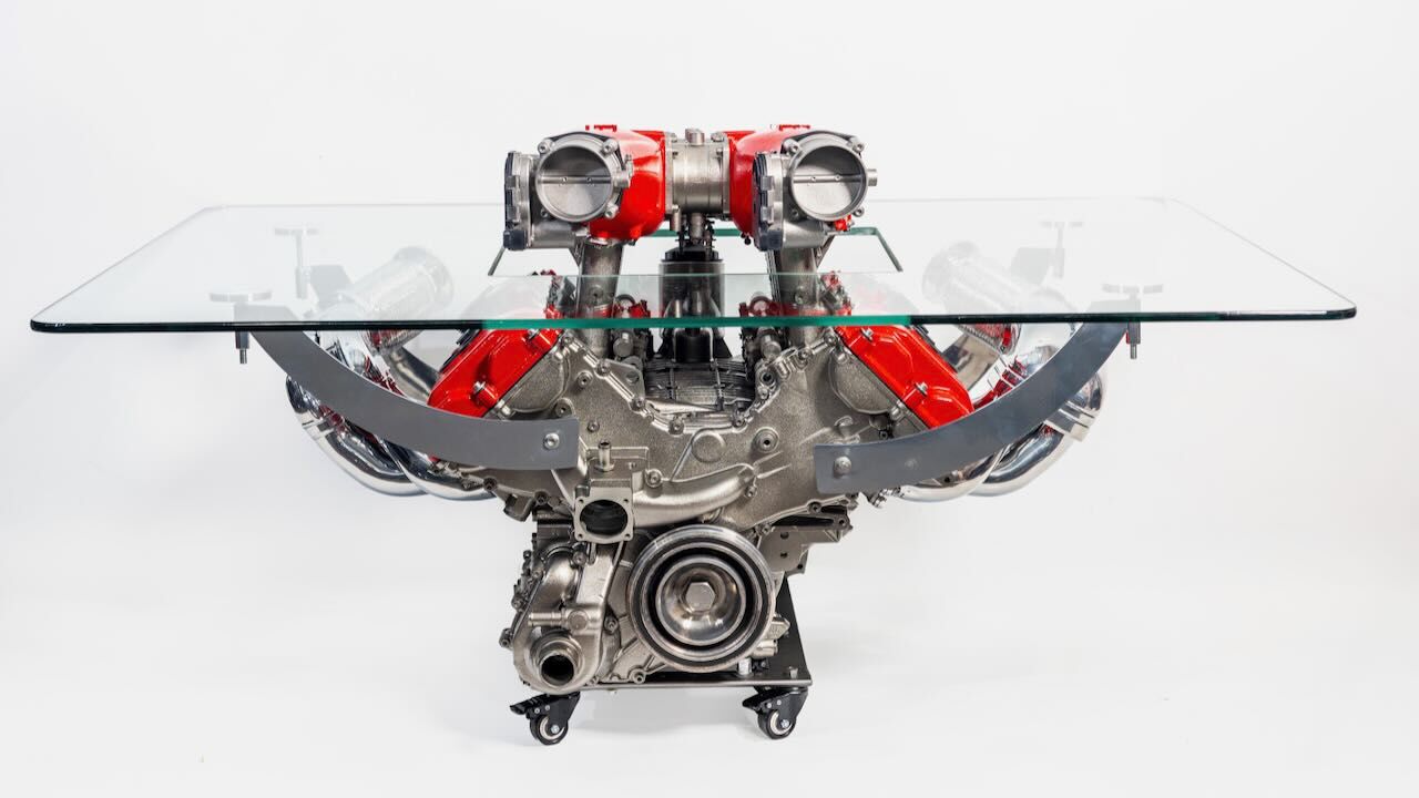 Nunca podré comprar un Ferrari, pero quizá sí esta mesa con el V8 de un Ferrari 458 Italia