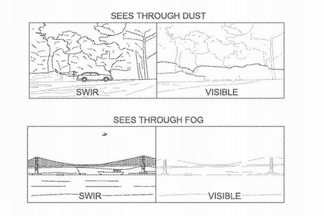 Sin embargo, destaca una imagen en particular. La Figura 12 muestra cómo las gafas pueden ver a través del polvo, la niebla y el humo al detectar lo que tienen delante. La patente describe la tecnología como un “sensor de imagen de silicio negro”, que también se utiliza para la tecnología de visión nocturna. El silicio negro, en teoría, verificaría lo que está fuera del rango de visión del conductor y detectaría cualquier obstáculo que esté en el camino. Eso se traduce en unas gafas que llenarían los espacios en blanco para que el espectador sepa lo que tiene por delante.