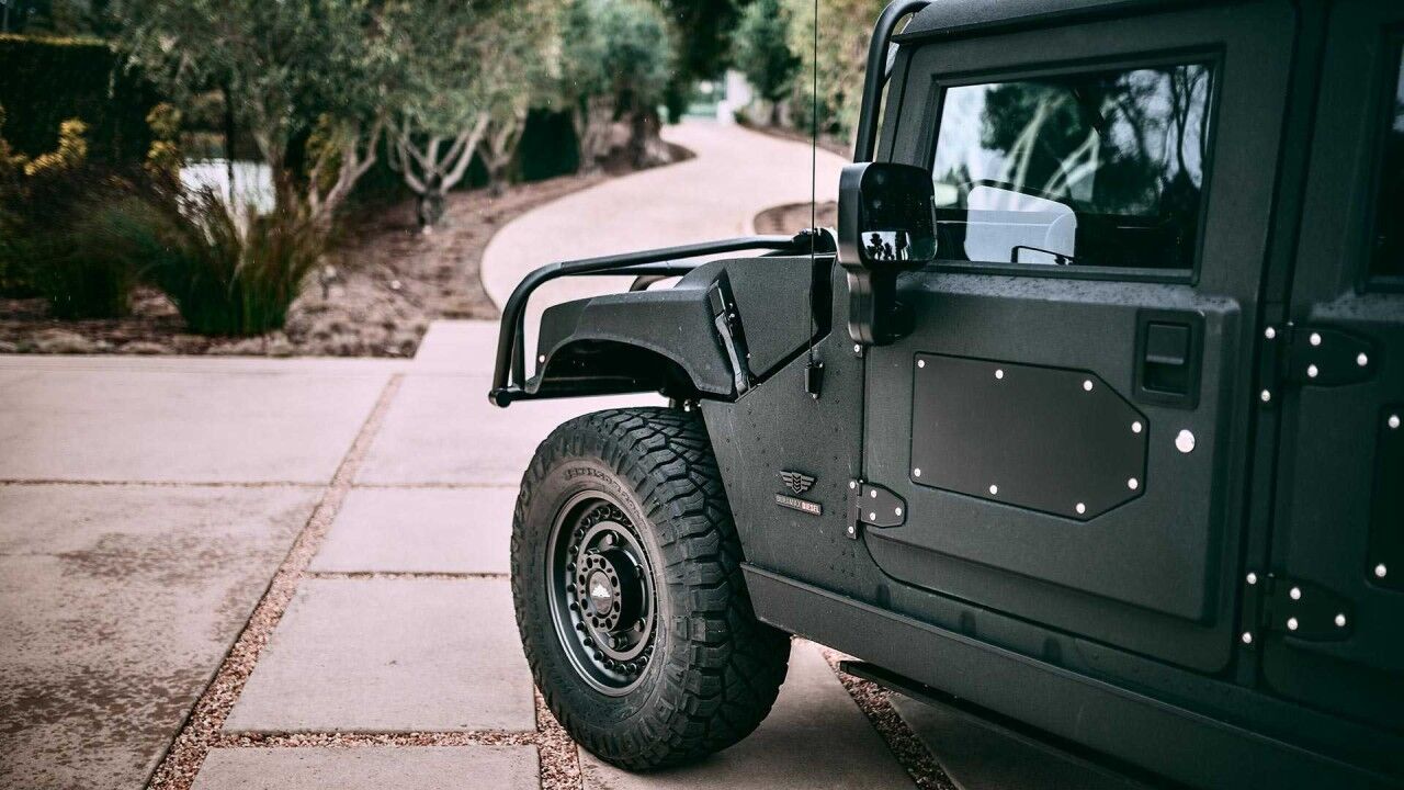 Al igual que otras creaciones de Mil-Spec, el equipo reemplaza el suelo original por una pieza de aluminio más rígida. Porque, el modelo original, no es que fuese una maravilla en este aspecto. Ahora, todos los paneles de la carrocería también son de aluminio de grado aeroespacial. El nuevo Hummer H1 monta en una suspensión neumática ajustable de ocho vías que ofrece 10 centímetros de variación de altura, no vaya a ser que los bajos raspen en los badenes y rampas.