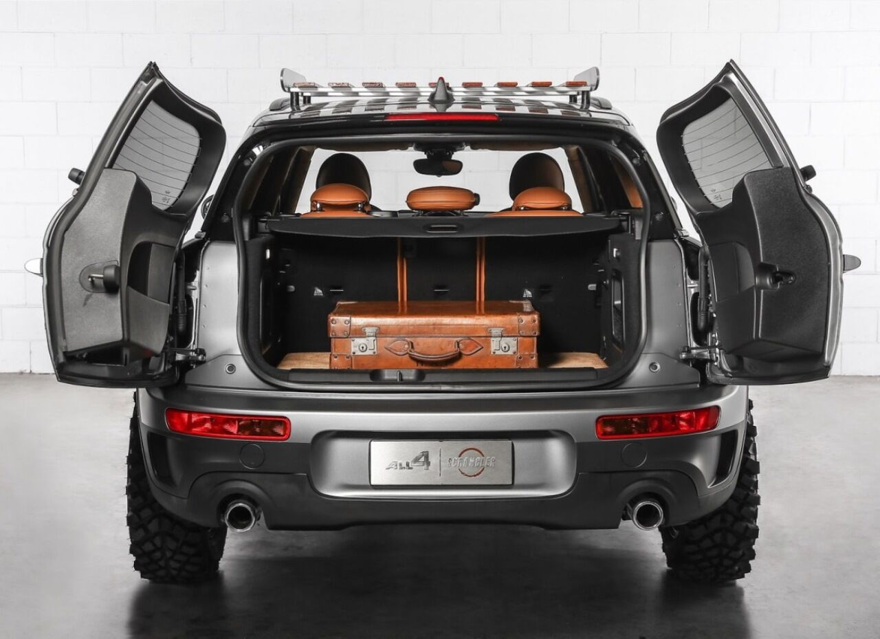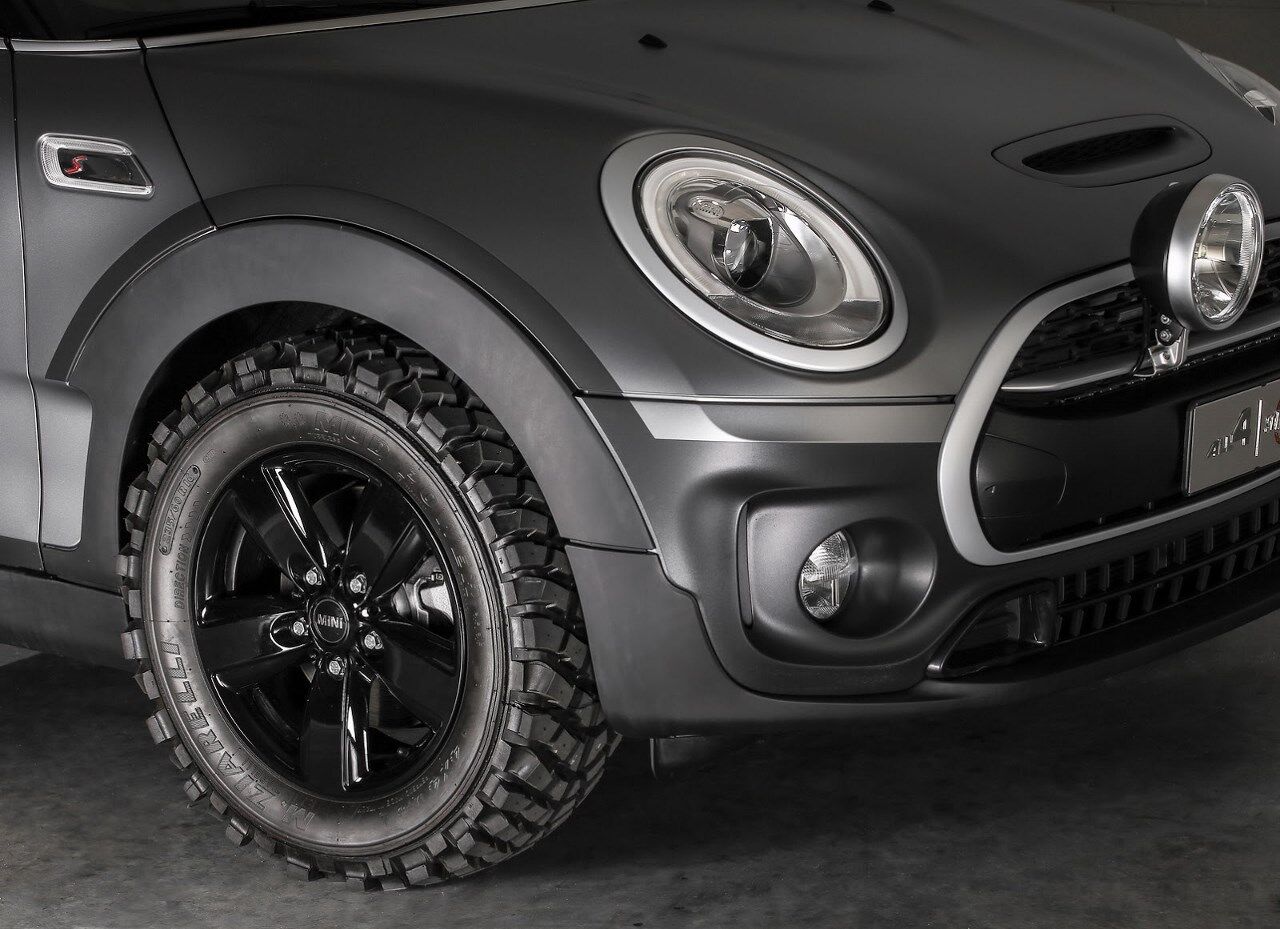 Este intrépido MINI con carrocería gris mate con detalles en negro adquiere unas nuevas suspensiones que le permiten ganar más altura libre al suelo y unas llantas de aleación oscuras que aportan ese uso off-road. Dispone, igual que la versión Clubman ALL4, de un sistema de tracción a las cuatro ruedas. Incluye además un portaequipajes en el techo, faros de posición frontal que recuerdan a los coches de los rallyes y nuevos revestimientos de plástico característicos de los SUV.