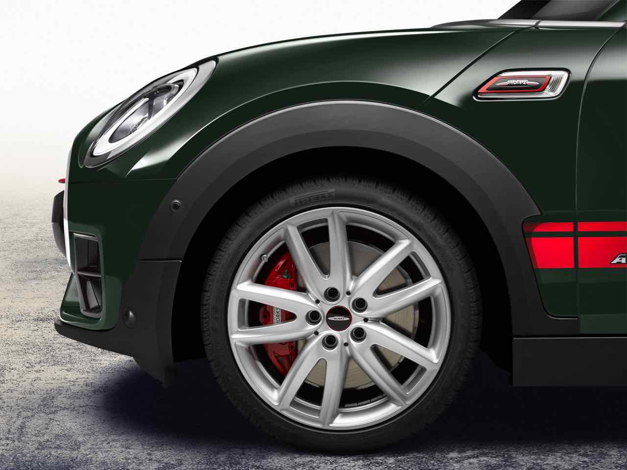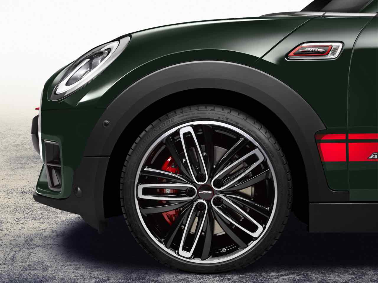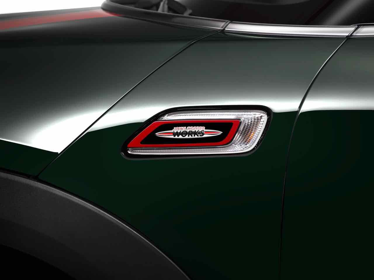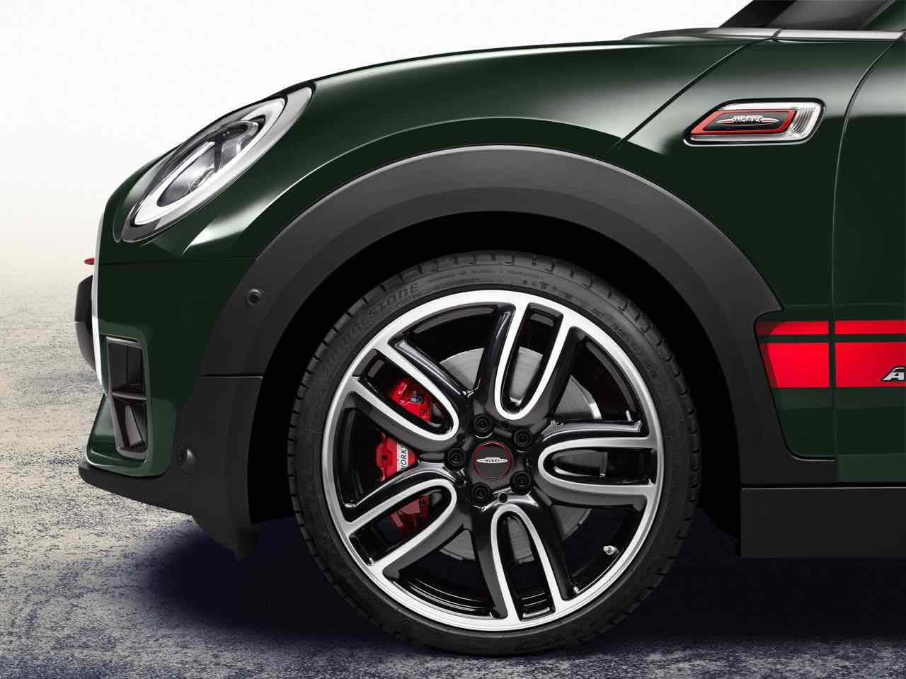 Obviamente, semejante arsenal tecnológico que mejorará la efectividad en la carretera debe distinguirse de otras versiones de un primer vistazo. Además de las suspensiones rebajadas, la parrilla deportiva, faldones laterales, defensas más agresivas, alerón al final del techo mejoran el apoyo aerodinámico, entradas de aire donde otros Clubman guarda los faros antiniebla... Sus llantas de serie son de 18 pulgadas (hay otras opcionales de 19)... En la zaga, el difusor trasero y las dos salidas de escape con brode cromado y escape con apertura de válvulas pone la guinda.