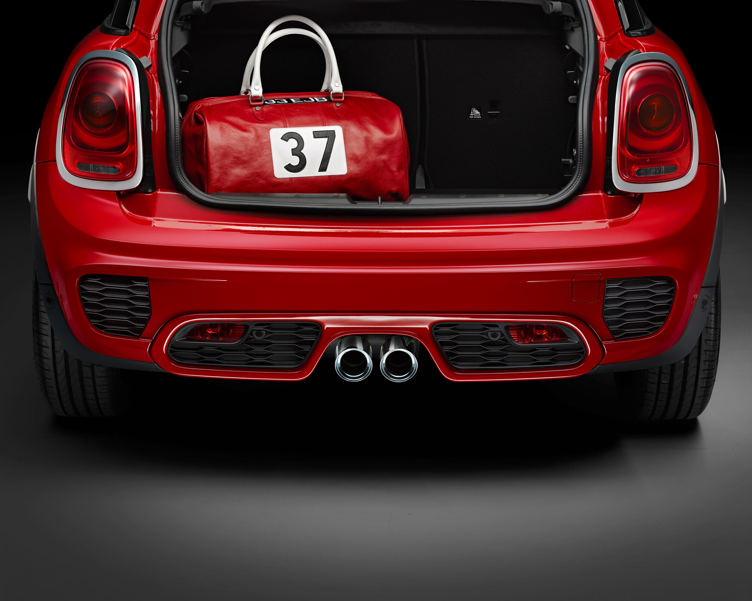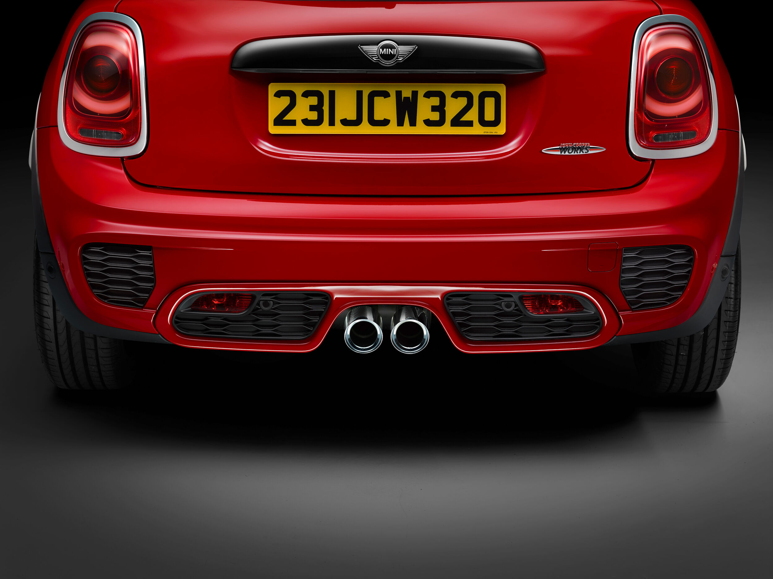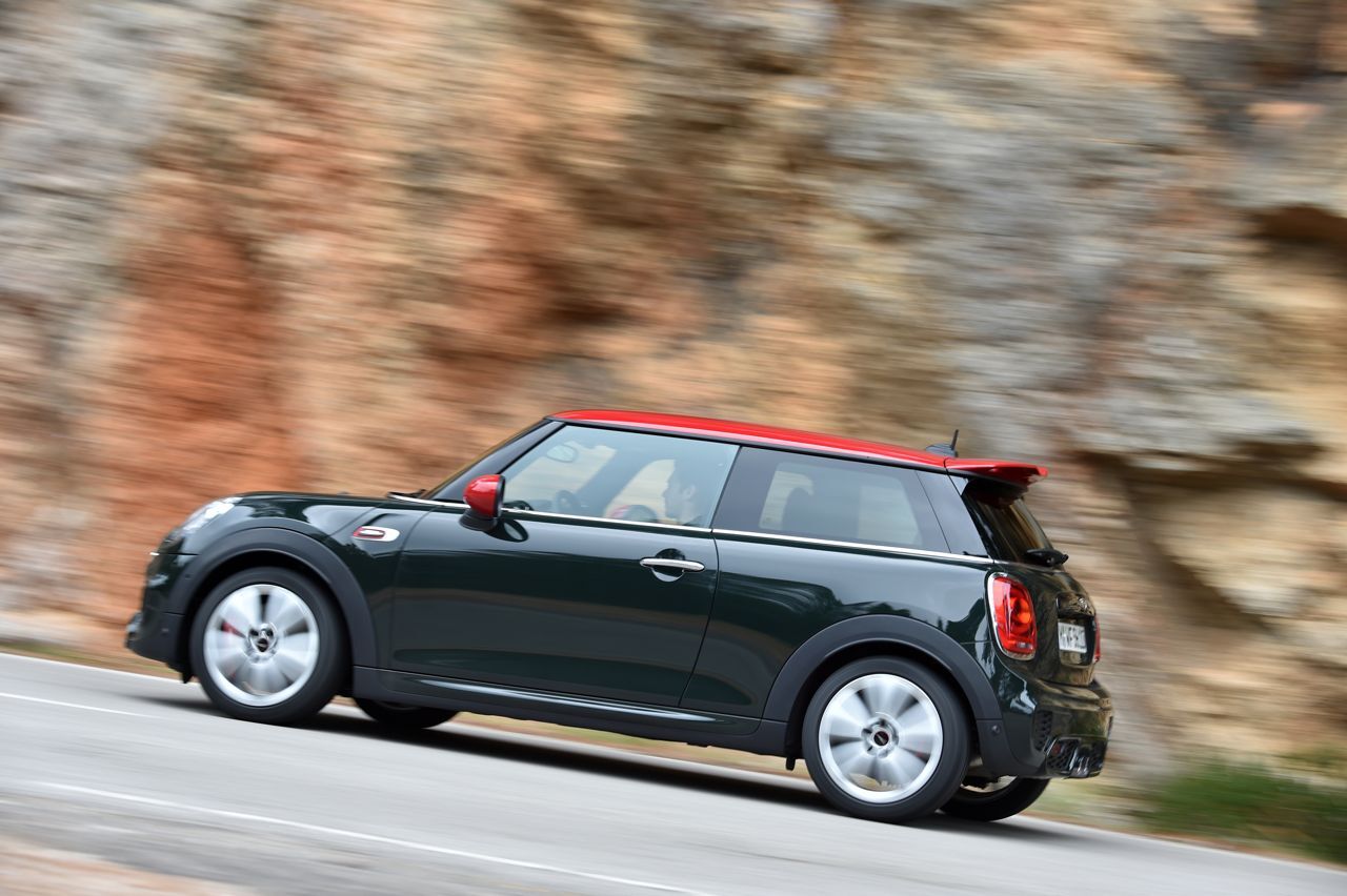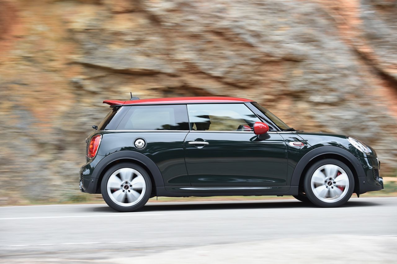 Y, tras analizar a fondo todo el apartado mecánico y técnico del coche, llega el momento de ver qué cambia a simple vista. MINI señala que carrocería se ha optimizado para que sea más aerodinámica. Cuenta con un faldón delantero específico, con grandes entradas de aire, que también ocupan los espacios correspondientes a los faros antiniebla que incluye el MINI 3 puertas. También son exclusivos de esta versión los faldones laterales, el posterior y el alerón trasero John Cooper Works. Con estos aditivos sus medidas se quedan en 3.874 mm de largo (con una distancia entre ejes de 2.495 milímetros), 1.727 de ancho y 1.414 de alto.