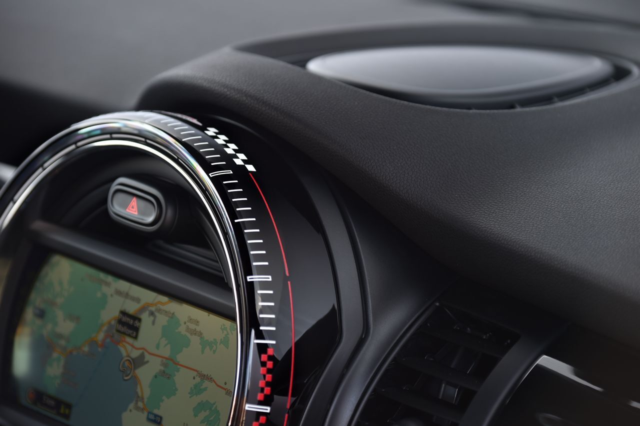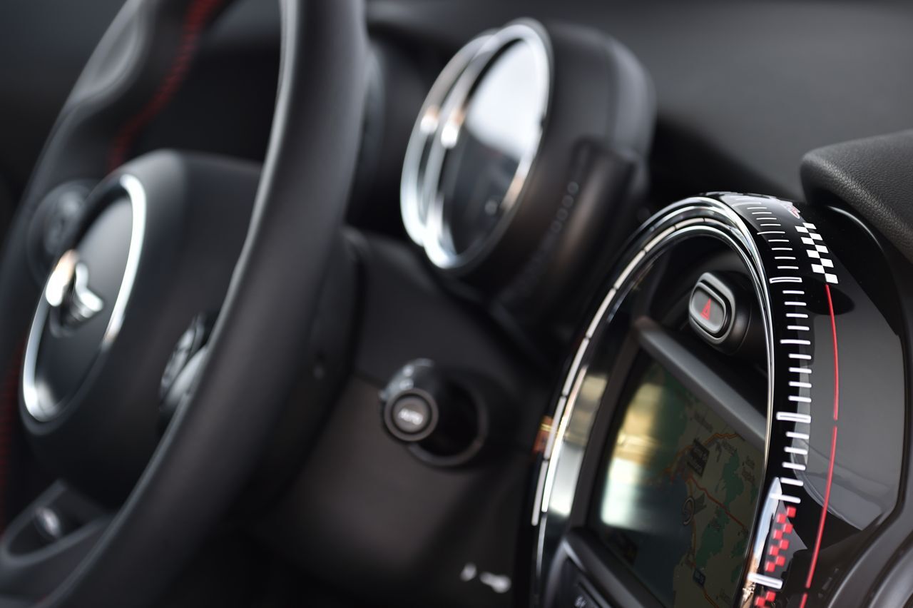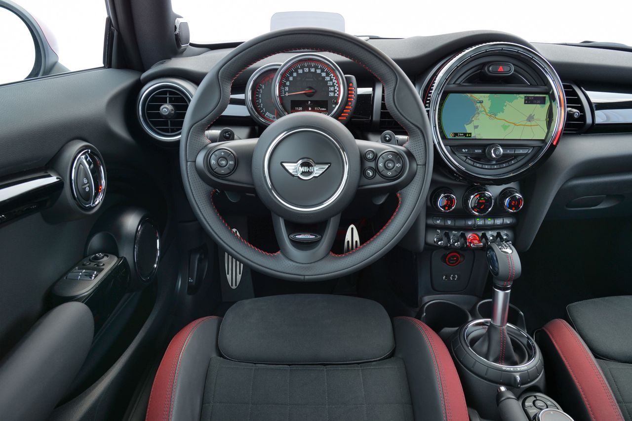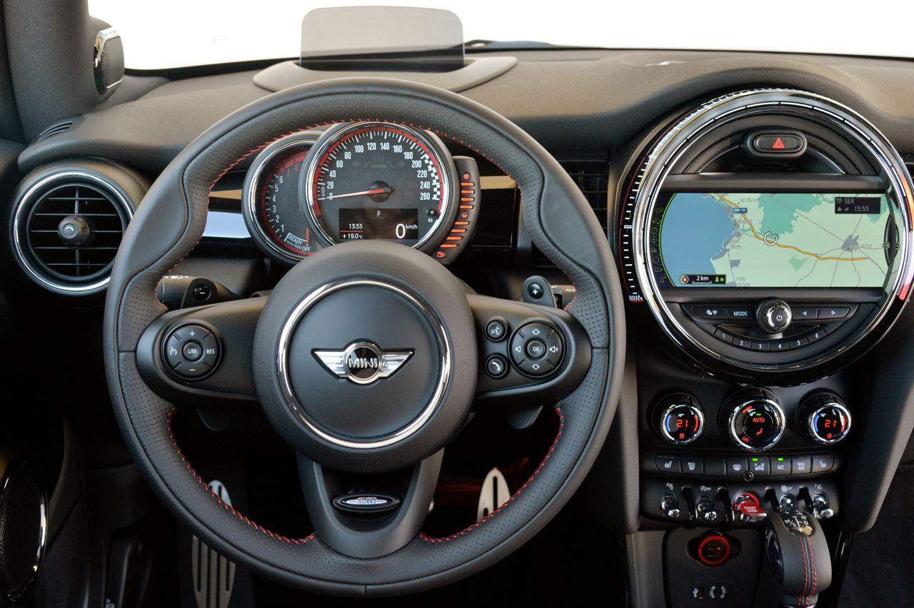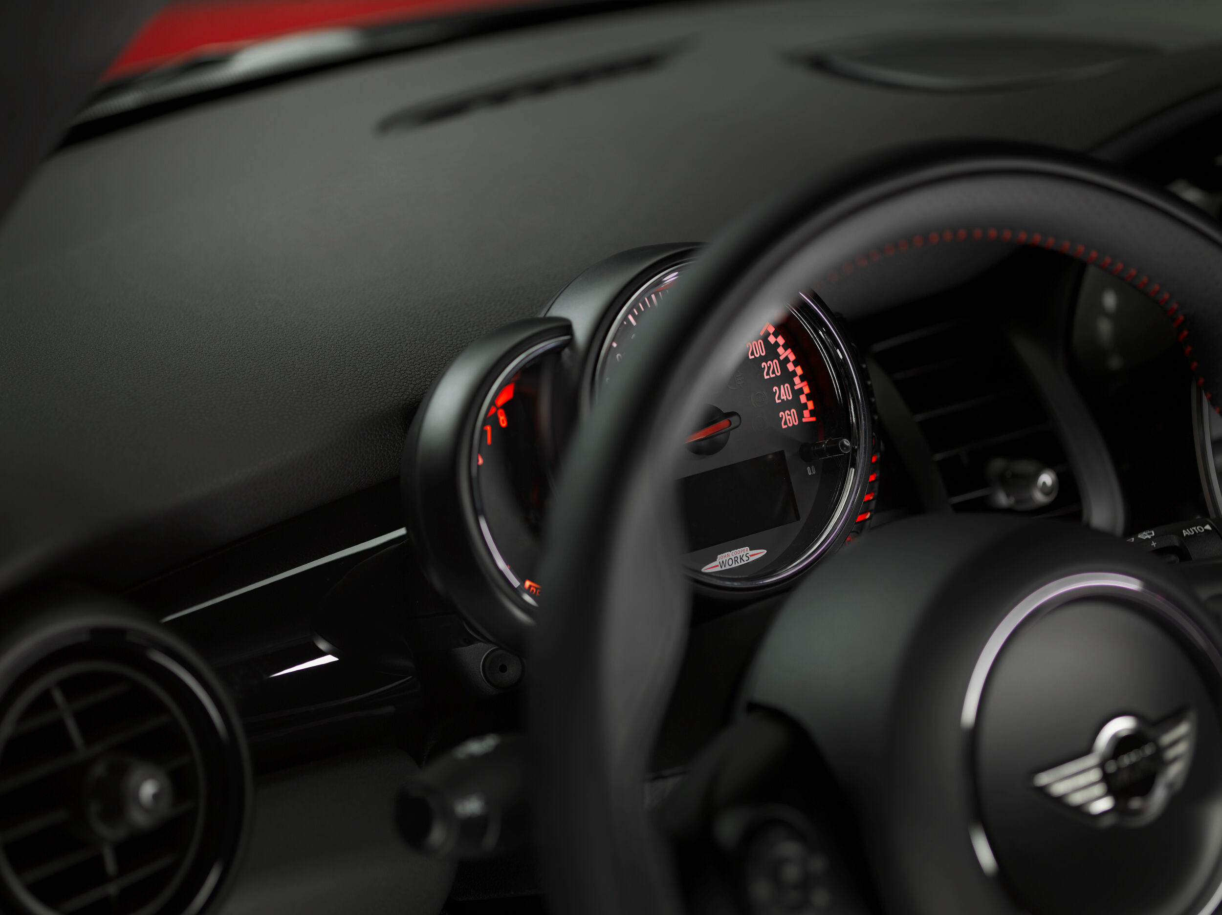 El nuevo Mini John Cooper Works puede adquirirse con la gama ampliada completa de sistemas de asistencia al conductor. Esta gama incluye el Driving Assistant con sistema de regulación activa de la velocidad mediante captación de imágenes con cámara, aviso de acercamiento peligroso al coche que circula delante y advertencia de presencia de peatones, con función de inicio de la activación de los frenos, asistente de luces de carretera, sistema de detección de señales de tráfico, Park Distance Control, asistente para aparcar y cámara para conducir marcha atrás.
