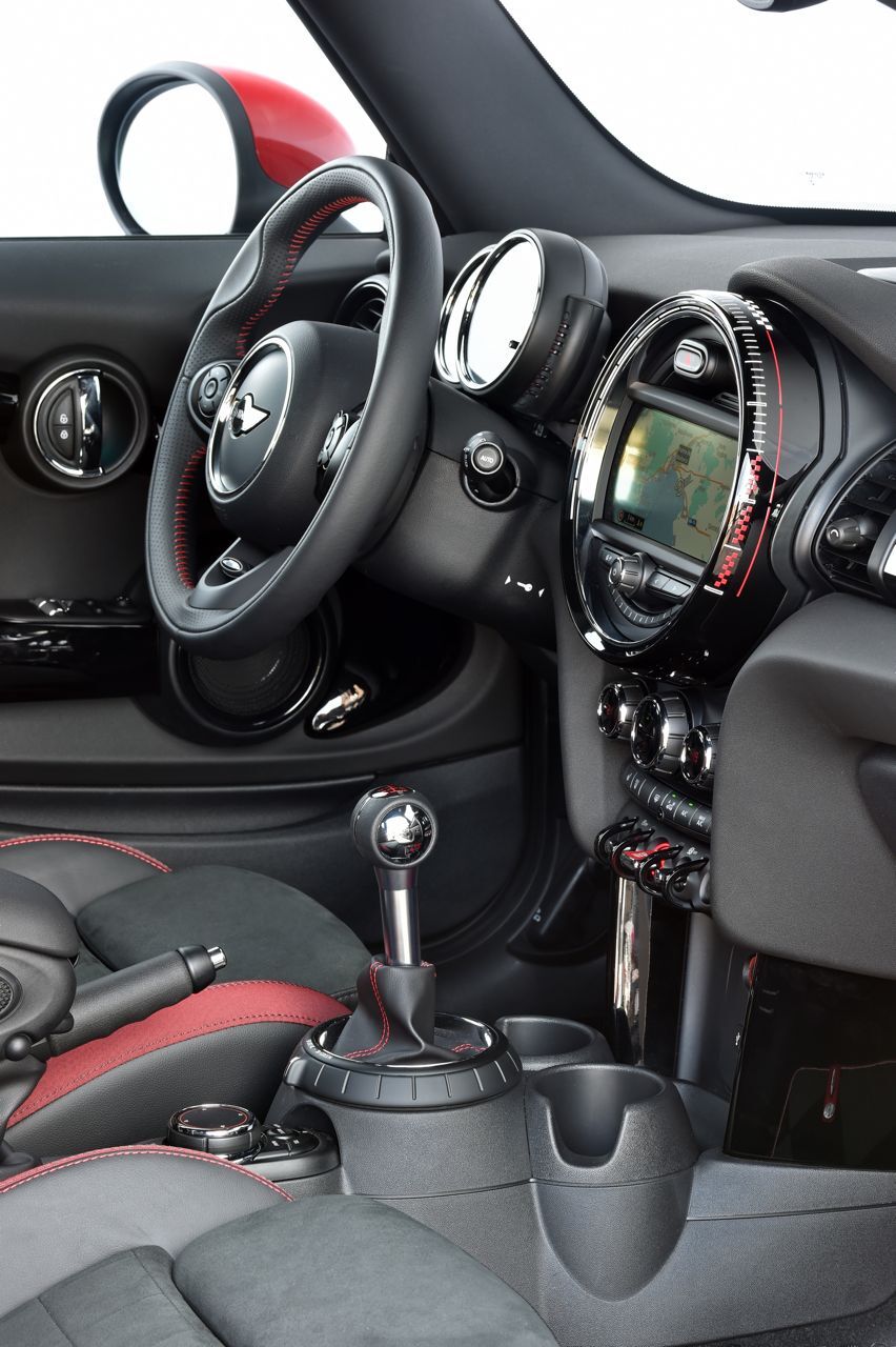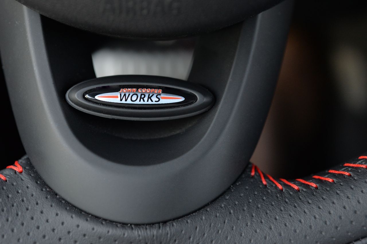 El interior, que sigue las pautas de calidad de los nuevos MINI 2014 y MINI 5 puertas, gana en deportividad. Nos hemos enamorado de sus asientos deportivos exclusivos John Cooper Works con tapicería en Dinamica, con apoyacabezas integrados. El volante multifunción es también especial, e integra el control de crucero y levas en combinación con la caja de cambios automática. Por cierto, la palanca de cambios cuenta con un diseño diferenciado. Y no faltan pedales y apoyapié para el conductor de acabado en acero inoxidable, el revestimiento del techo de color antracita y molduras de entrada John Cooper Works.