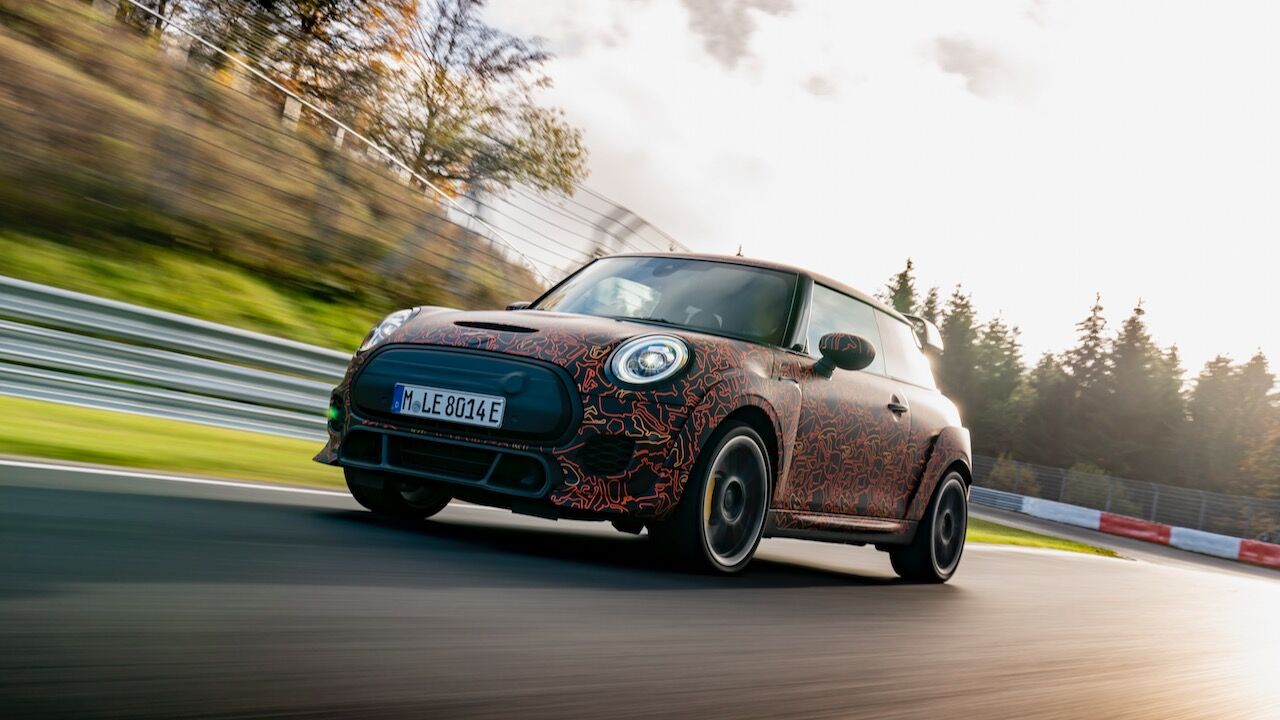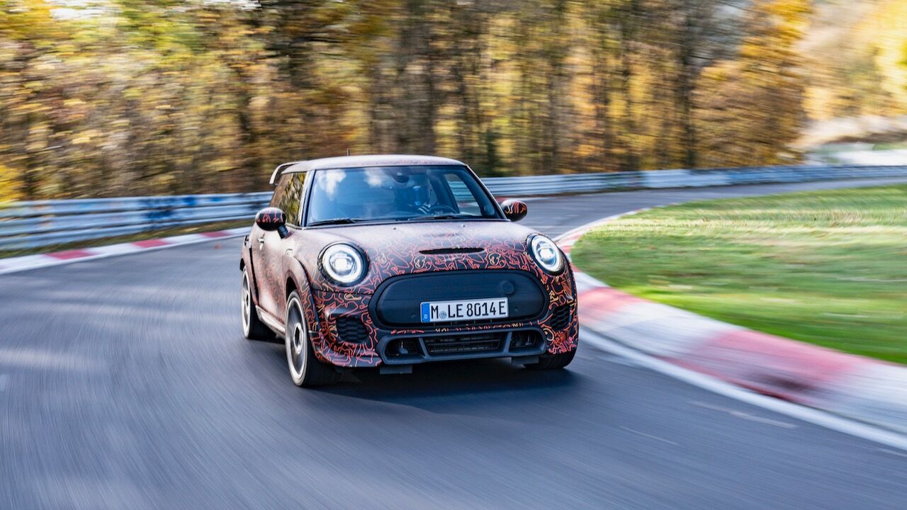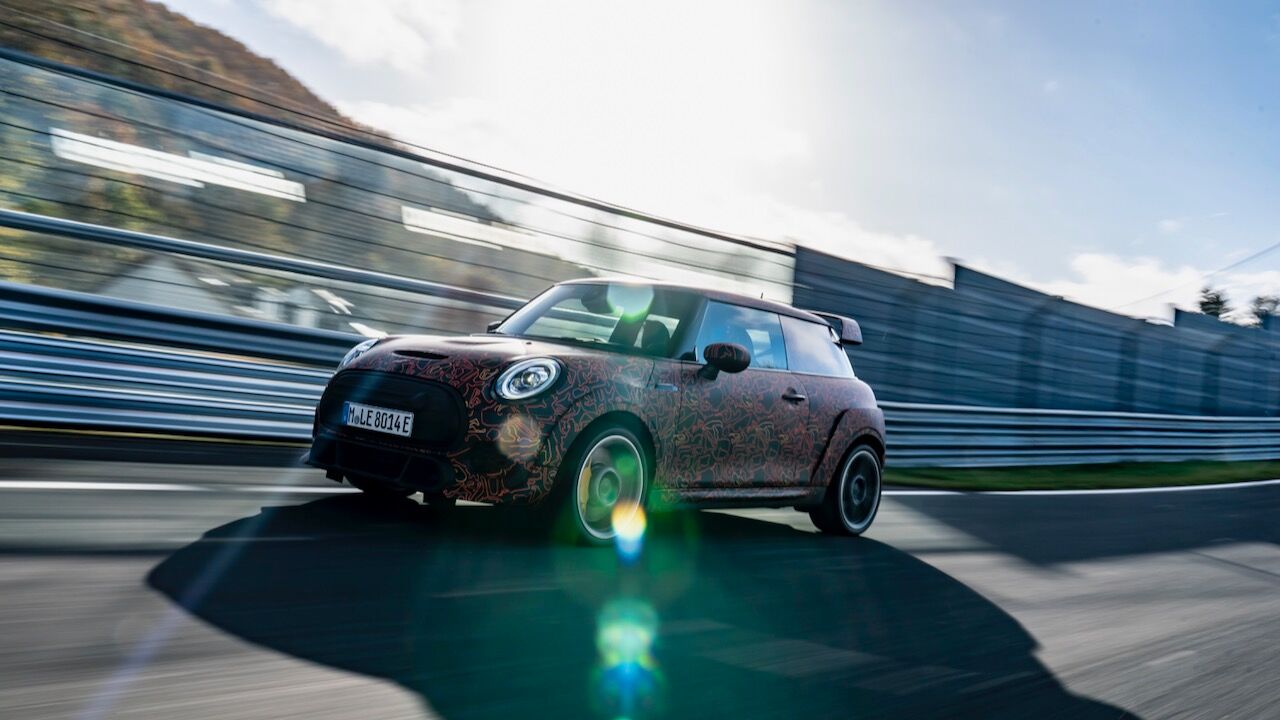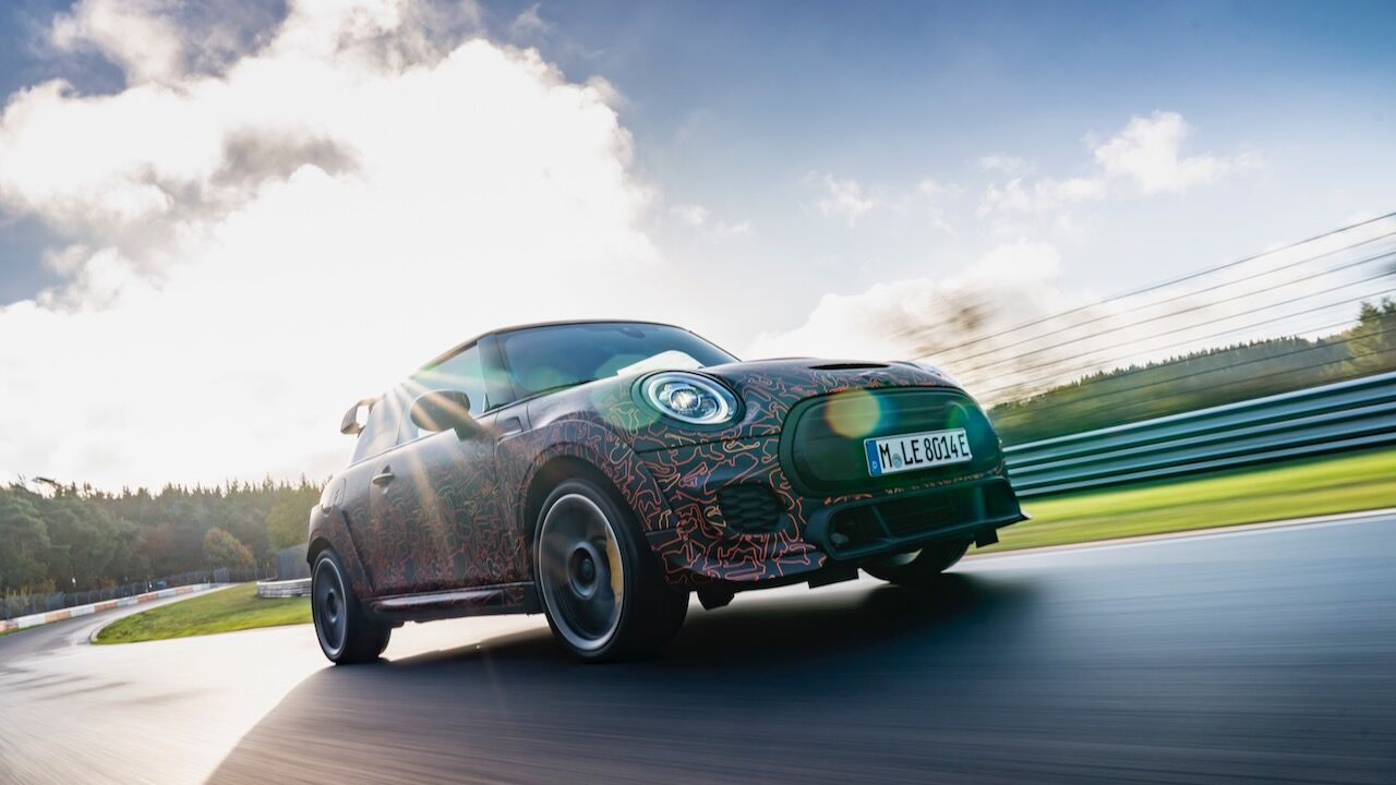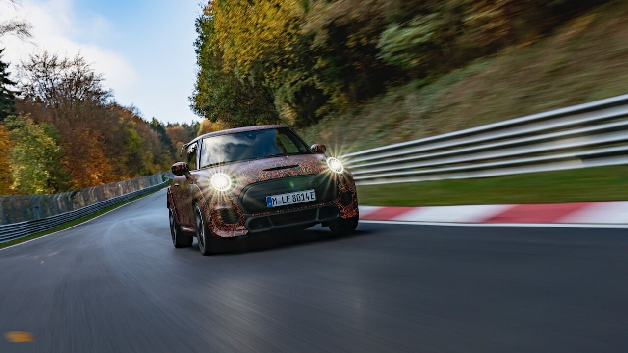 Sin embargo, el MINI John Cooper Works eléctrico será aún más extremo. El prototipo que se encuentra en fase de desarrollo, a pesar de estar camuflado, cuenta con una estética más radical y al estilo de lo visto en el MINI John Cooper Works GP. Ha estado rodando por el mítico trazado de Nürburgring Nordschleife para conseguir una puesta a punto destacada. De hecho, parece que la marca de origen británico va a dar preferencia a las sensaciones de conducción, no lanzará nada al mercado hasta que no consiga el nivel que buscan.