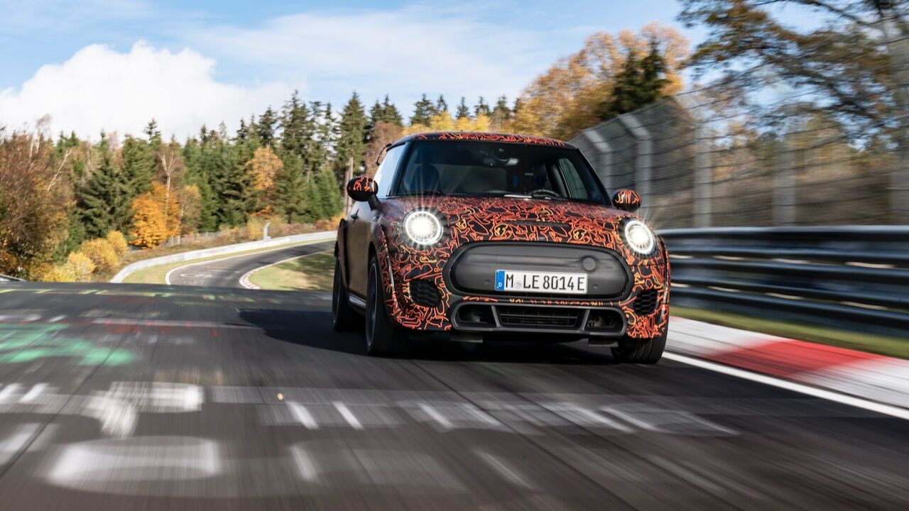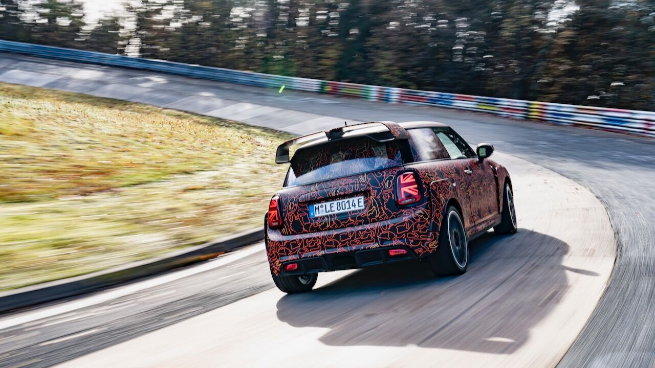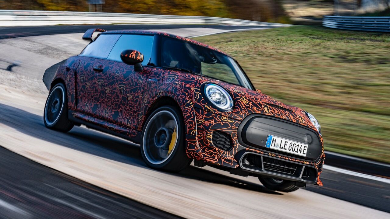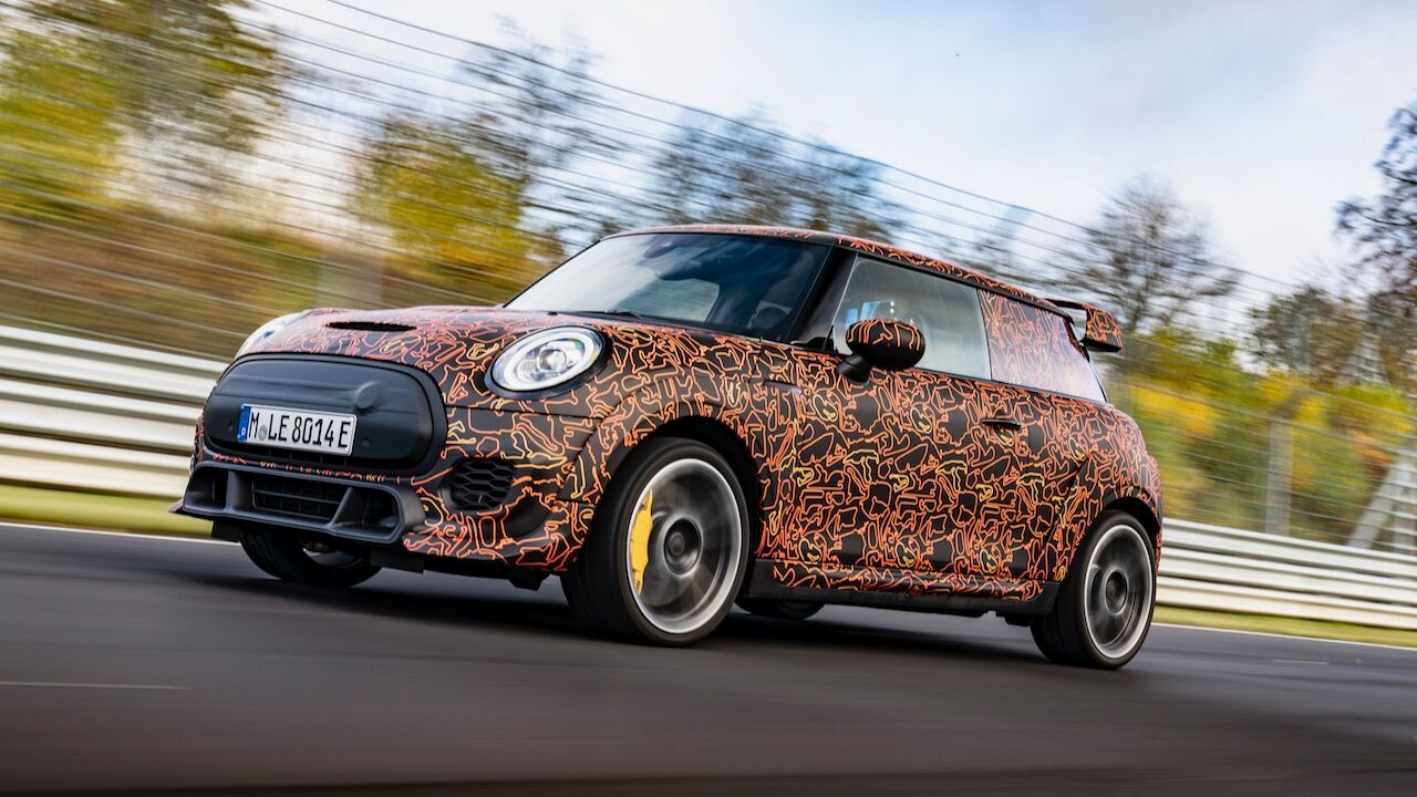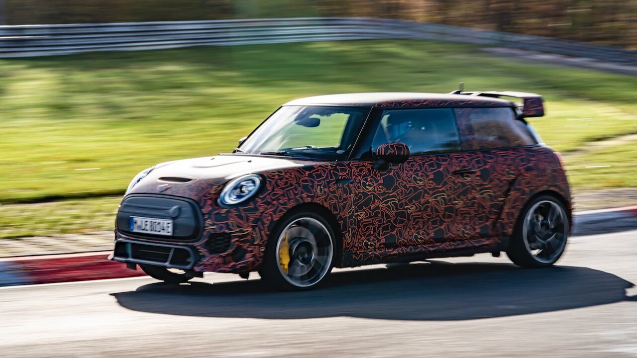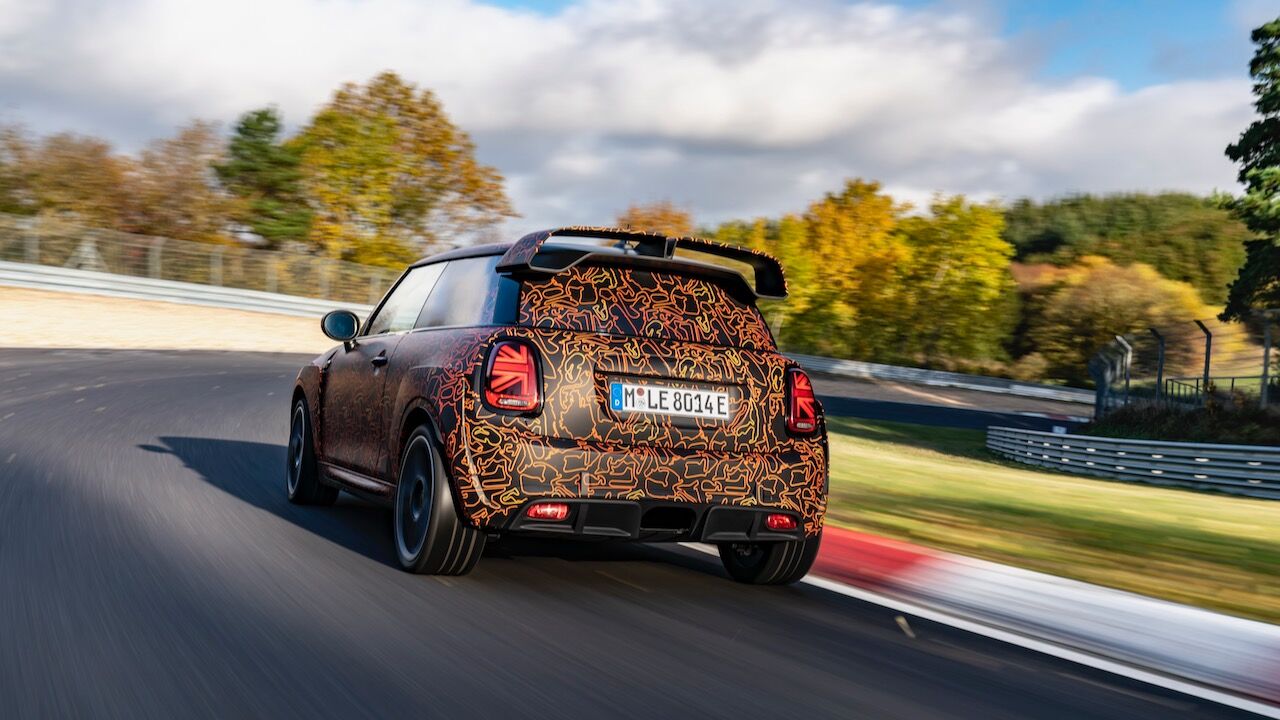 Sin embargo, el MINI John Cooper Works eléctrico será aún más extremo. El prototipo que se encuentra en fase de desarrollo, a pesar de estar camuflado, cuenta con una estética más radical y al estilo de lo visto en el MINI John Cooper Works GP. Ha estado rodando por el mítico trazado de Nürburgring Nordschleife para conseguir una puesta a punto destacada. De hecho, parece que la marca de origen británico va a dar preferencia a las sensaciones de conducción, no lanzará nada al mercado hasta que no consiga el nivel que buscan.