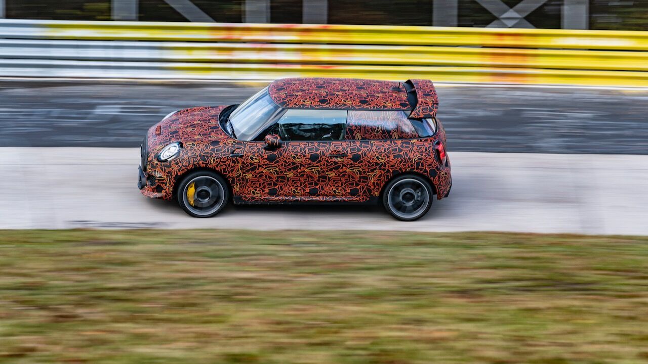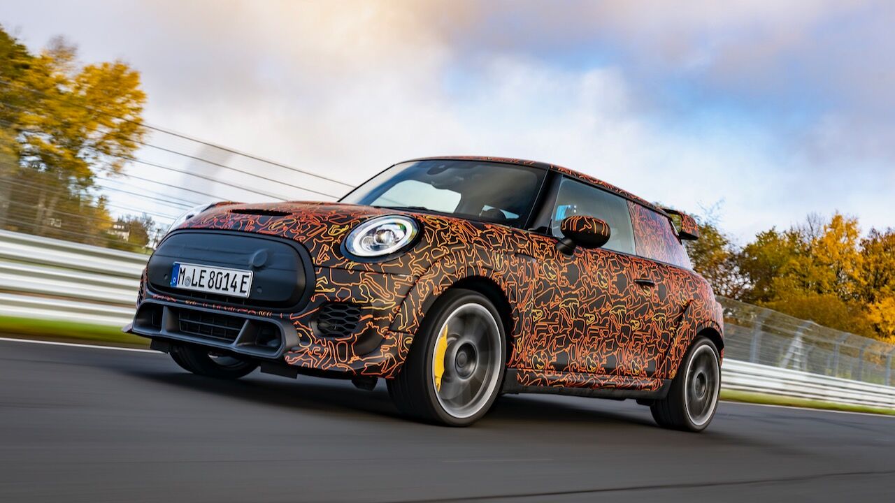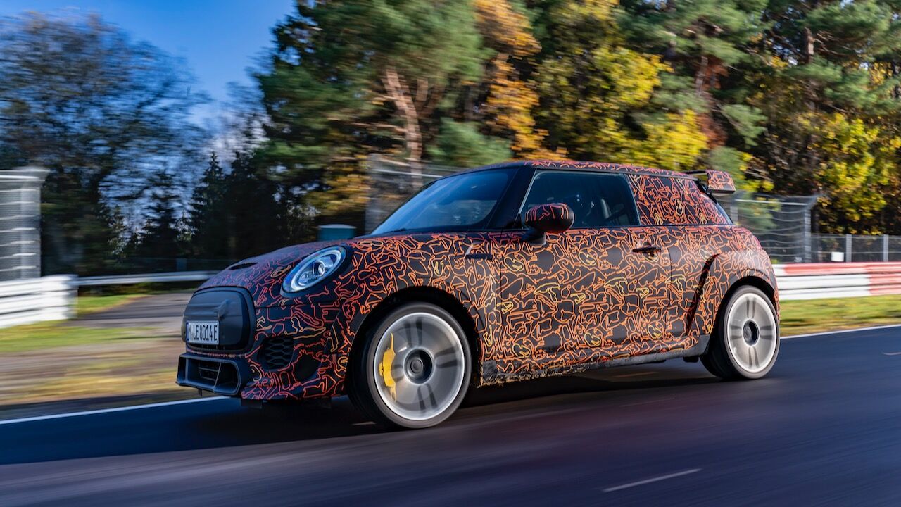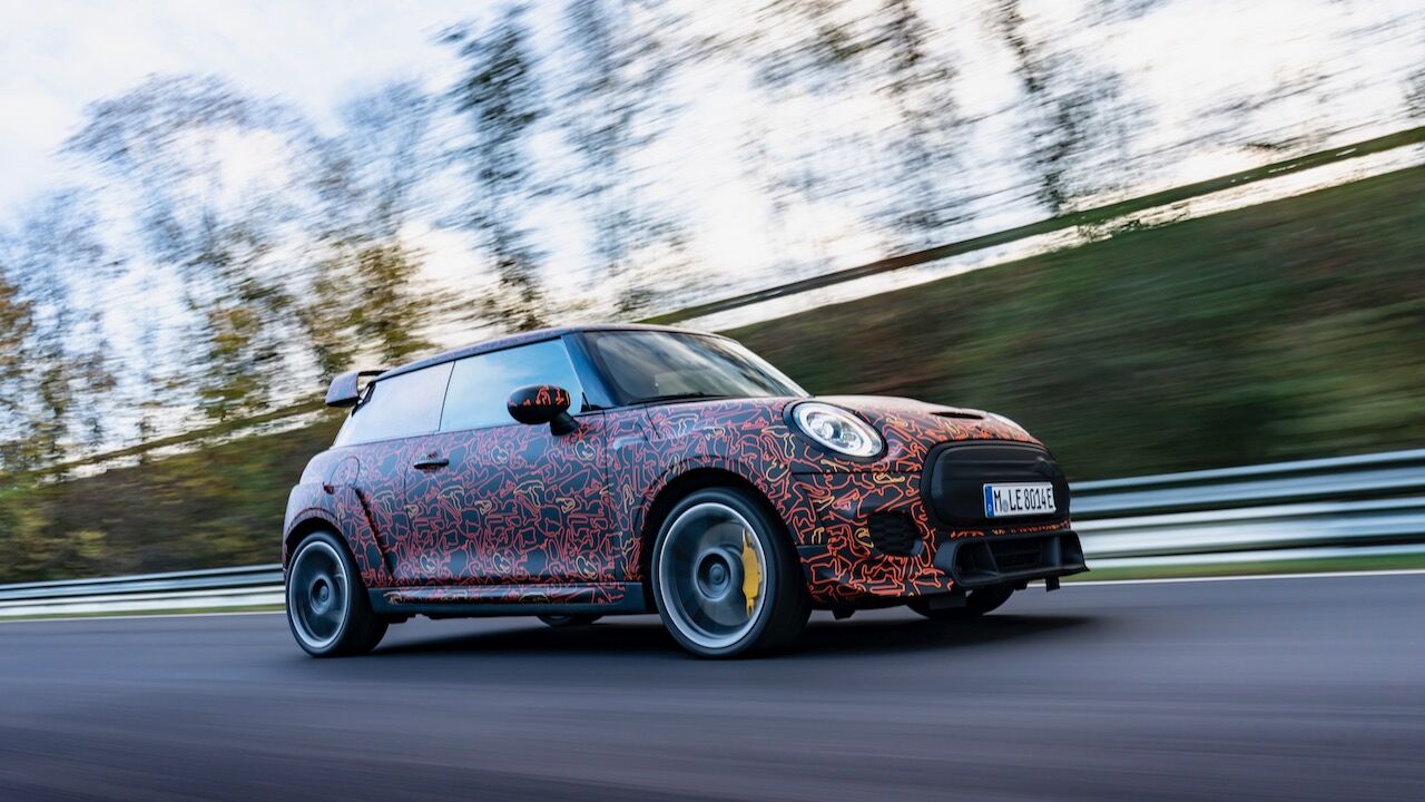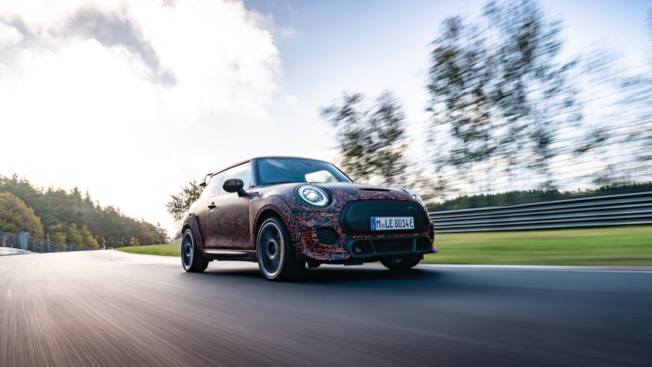 Sin embargo, el MINI John Cooper Works eléctrico será aún más extremo. El prototipo que se encuentra en fase de desarrollo, a pesar de estar camuflado, cuenta con una estética más radical y al estilo de lo visto en el MINI John Cooper Works GP. Ha estado rodando por el mítico trazado de Nürburgring Nordschleife para conseguir una puesta a punto destacada. De hecho, parece que la marca de origen británico va a dar preferencia a las sensaciones de conducción, no lanzará nada al mercado hasta que no consiga el nivel que buscan.