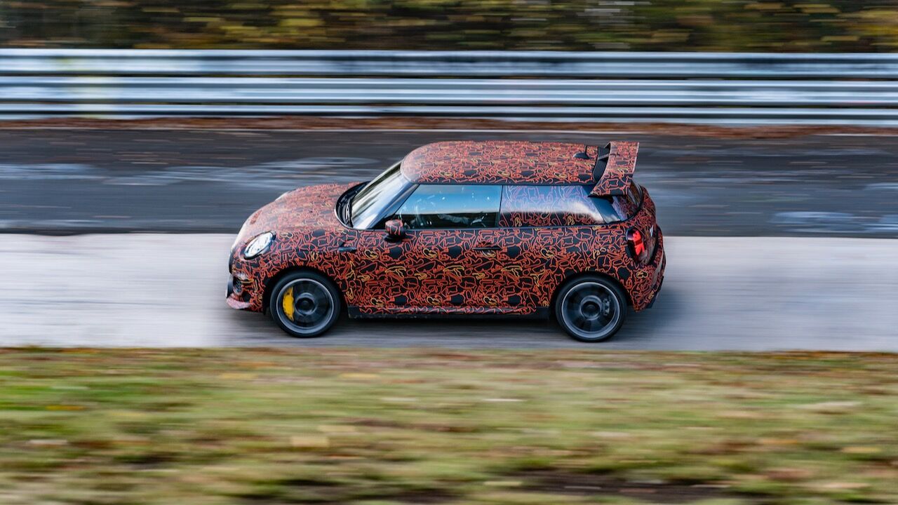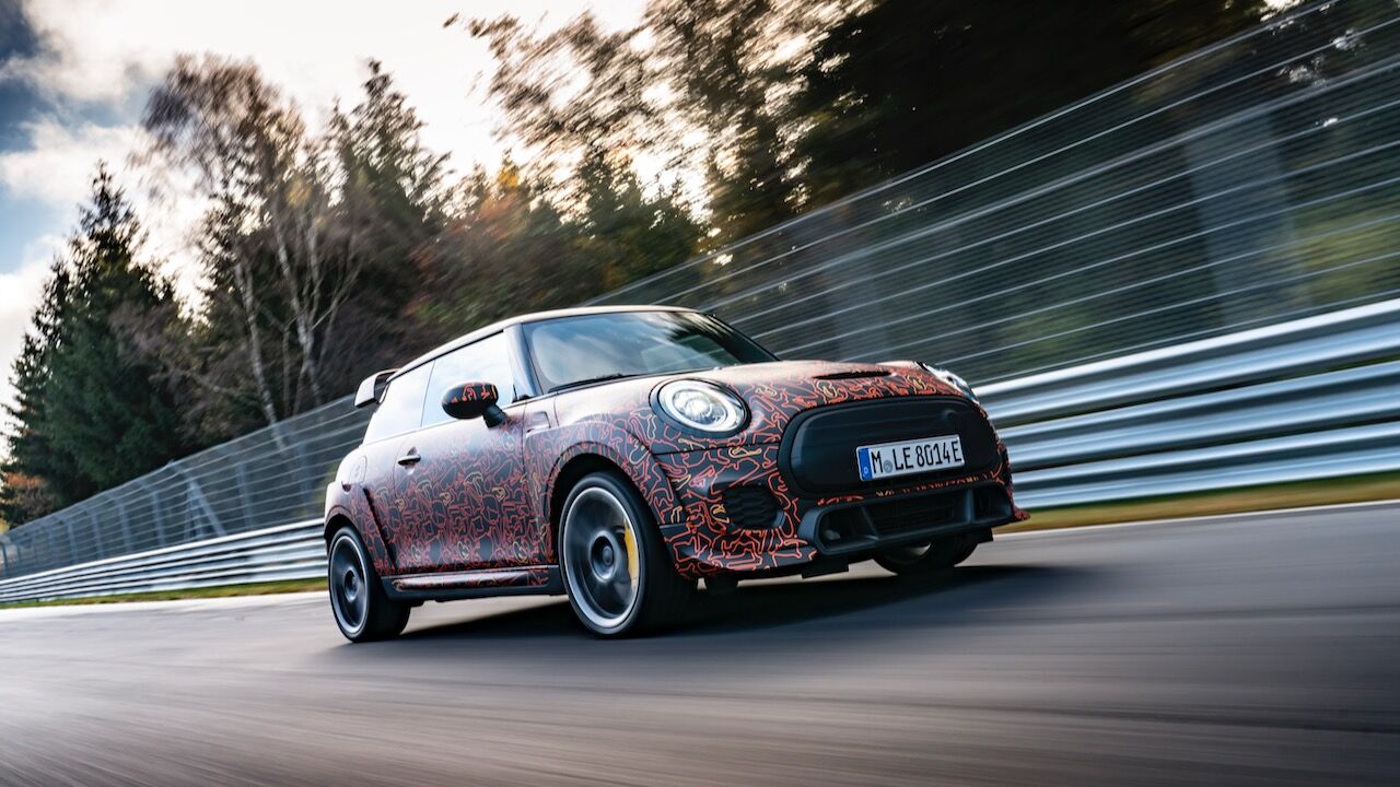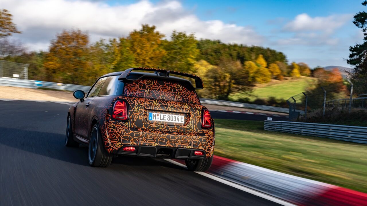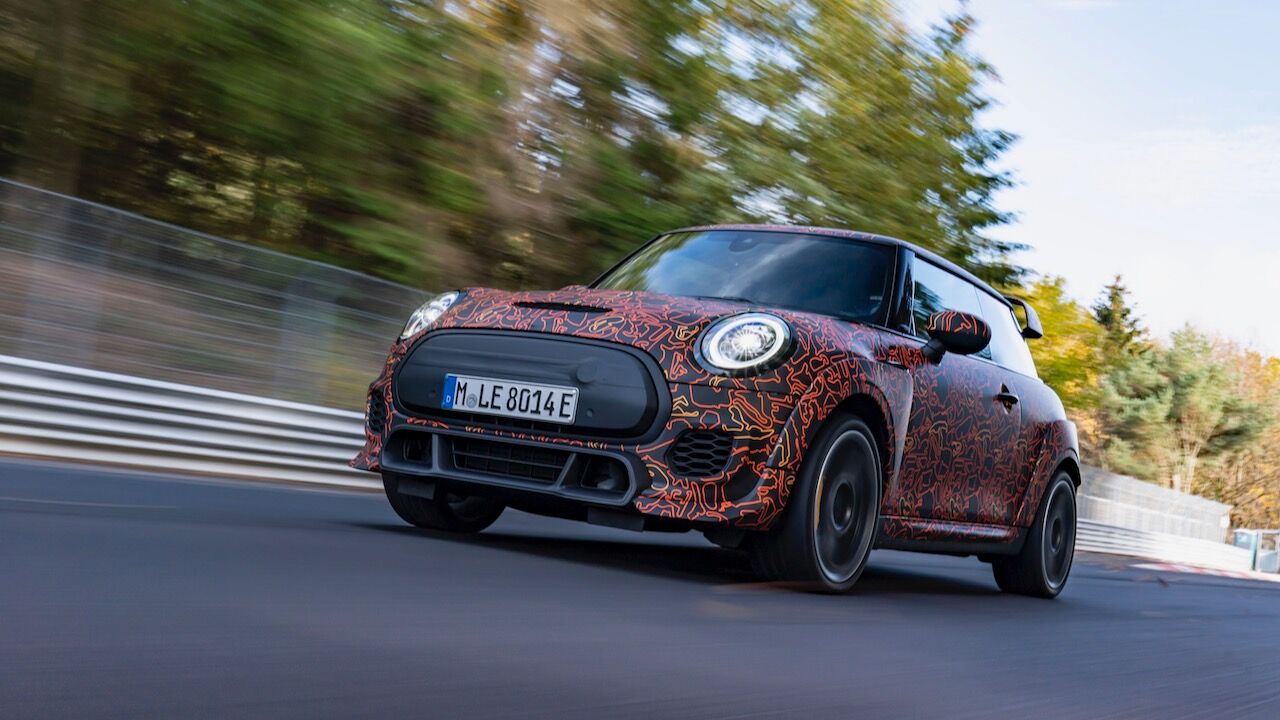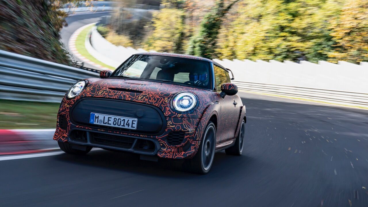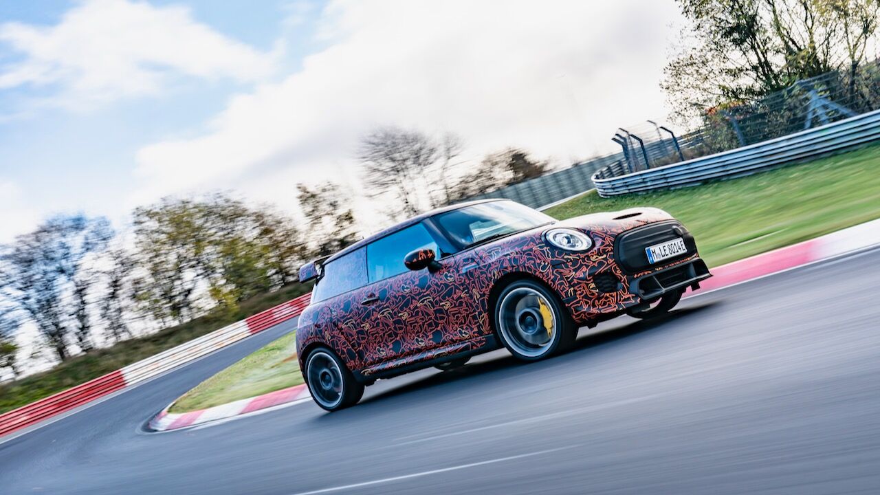 Sin embargo, el MINI John Cooper Works eléctrico será aún más extremo. El prototipo que se encuentra en fase de desarrollo, a pesar de estar camuflado, cuenta con una estética más radical y al estilo de lo visto en el MINI John Cooper Works GP. Ha estado rodando por el mítico trazado de Nürburgring Nordschleife para conseguir una puesta a punto destacada. De hecho, parece que la marca de origen británico va a dar preferencia a las sensaciones de conducción, no lanzará nada al mercado hasta que no consiga el nivel que buscan.