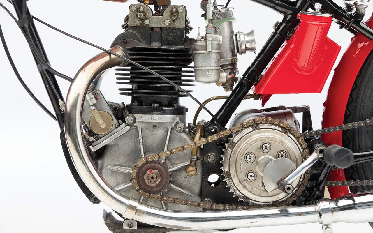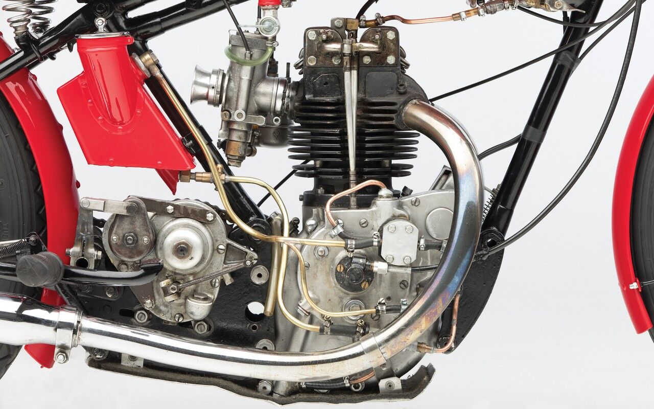 Esta Rudge 500 TT es una réplica de las utilizadas por el equipo de Enzo. Está alimentada por una válvula de 28cv de fuerza y 499cc, transmisión de 4 velocidades y con una garantía de 160 km/h. La moto de la imageniba a ser subastada en París el pasado 8 de febrero, pero se retiró su venta por algún motivo, tal vez encontraron un comprador.