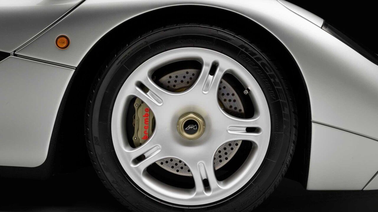 Los tres asientos van a juego, quedando el del conductor resaltado por una sección central de Alcántara roja perforada. Con más cuero Woking Grey reviste el salpicadero, y el volante es tan original como nuevo. Su propietario conservará el aro original con el fin de mantener la referencia histórica, pero se ha instalado uno de nueva factura extraído del almacén de piezas originales del F1 que McLaren ha guardado durante décadas.