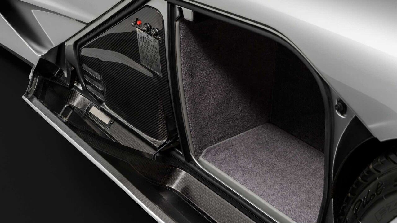 El primer paso fue retirar la carrocería, el motor y la transmisión. El interior se retapizó en el mismo cuero Semi Aniline original, una opción única cuando el coche se puso a la venta en 1993. Posteriormente, el habitáculo se forró al completo con cuero Woking Grey, un color inspirado en el techo sobre el antiguo cuartel general del fabricante británico en Albert Drive, Reino Unido. La moqueta que cubre el suelo también luce el mismo tono.