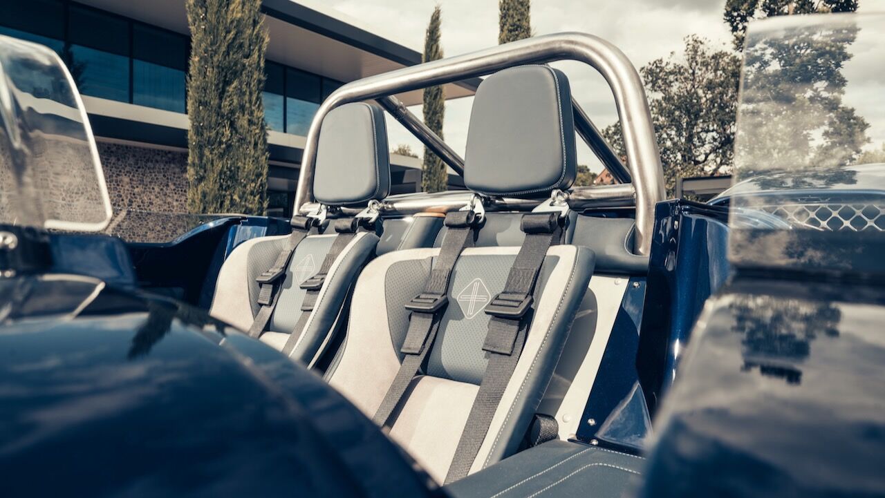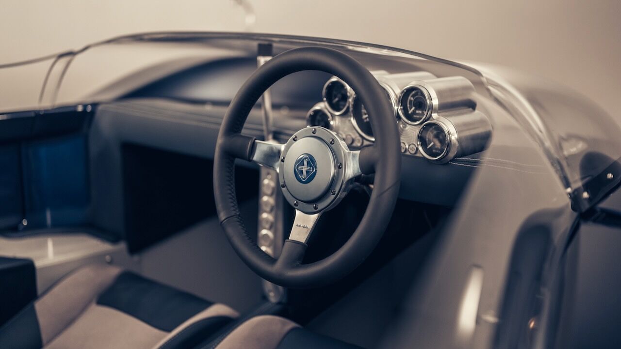 Toda su carrocería está hecha con fibra de carbono infundida con grafeno para conservar una ligereza envidiable. Este ejemplar desarrollado en Gran Bretaña apenas pesa 900 kg y tiene unas claves de diseño que recuerdan a las del McLaren M1A, de ahí que presuma de los pequeños faros circulares. Aunque donde realmente se han centrado sus creadores ha sido en el rendimiento aerodinámico. Tiene unas formas muy marcadas y destaca a pesar de tener esa cabina abierta con apenas un pequeño parabrisas.