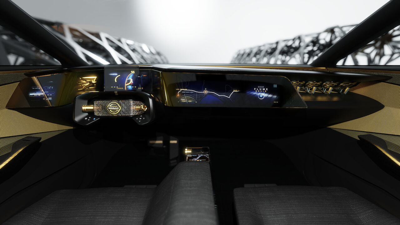 En el interior del Nissan IMs Concept la atmósfera cambian en función de si está en modo manual o en modo autónomo. En el manual todo se centra en el conductor con todas las pantallas mostrando la información pertinente para favorecer la conducción. En modo autónomo el ambiente se vuelve más desenfadado para que los pasajeros puedan hablar entre ellos o beneficiarse de las diferentes opciones de infoentreteniemiento.