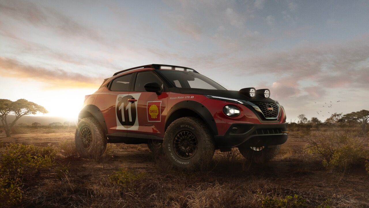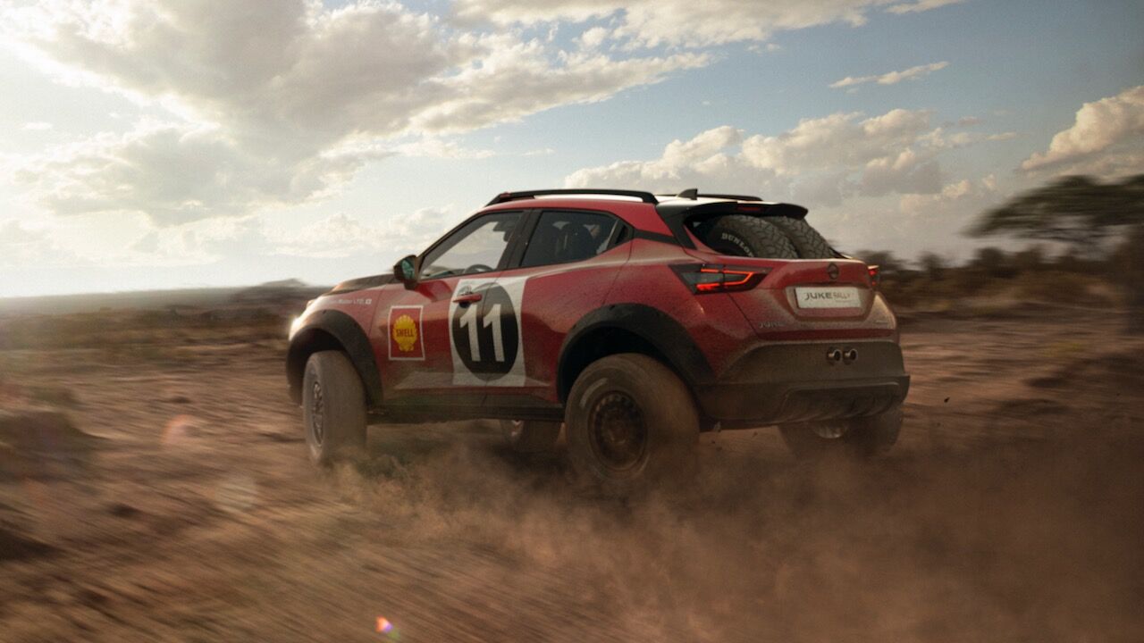 Sale con el objetivo de conmemorar el 50 aniversario de la victoria en el Rally de África Oriental por parte del icónico Nissan 240Z. Lo cierto es que el nuevo Nissan Juke no tiene aptitudes todoterreno y a duras penas sobreviviría a un rally, pero para eso se le han realizado modificaciones al prototipo. Basta con ver esa carrocería elevada con voladizos más cortos y pasos de rueda agrandados para poder acoger unos nuevos neumáticos todoterreno.
