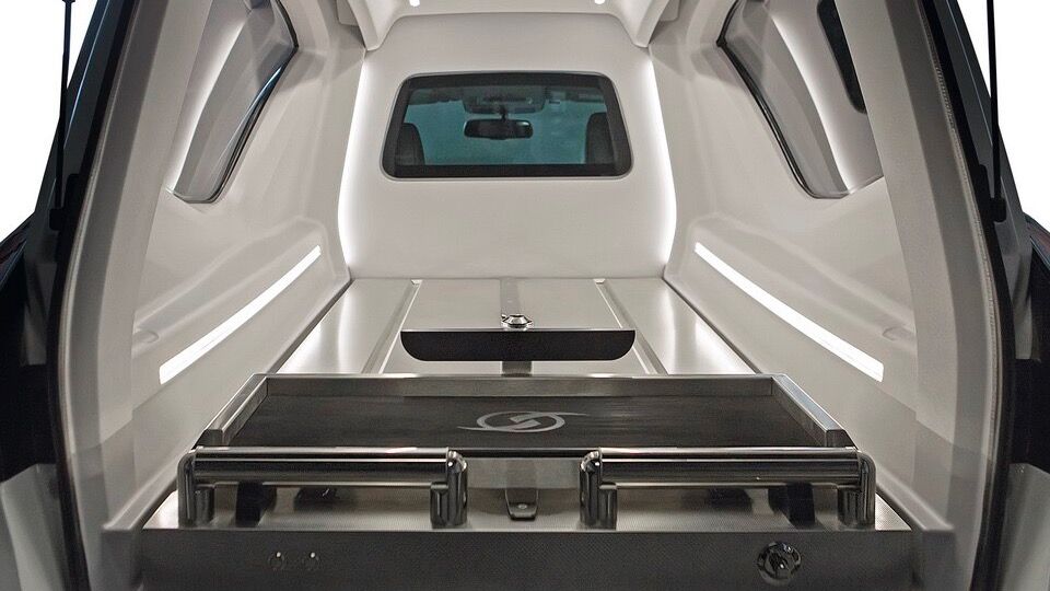 Por otro lado, hay otra variante del Leaf llamada INNOVe, que ha sido diseñada por Indusauto. La empresa ha creado un coche fúnebre utilizando técnicas avanzadas como el modelado 3D. De esta forma consigue validad en la fase de diseño todos los requisitos funcionales que necesita el cliente. Algunos detalles llamativos son la plataforma extraíble del lateral, la iluminación integrada IH LED interior o las cortinas laterales integradas en el techo. También se pueden sumar accesorios como elevaféretros y portaurnas.