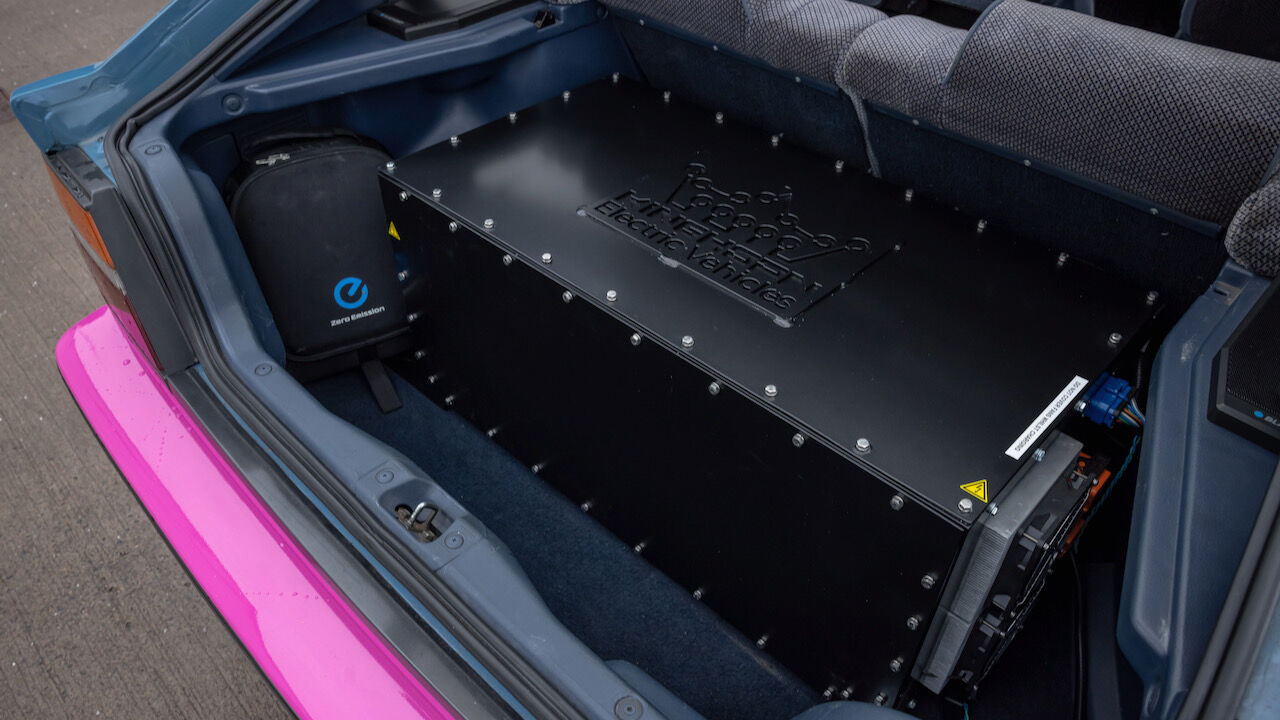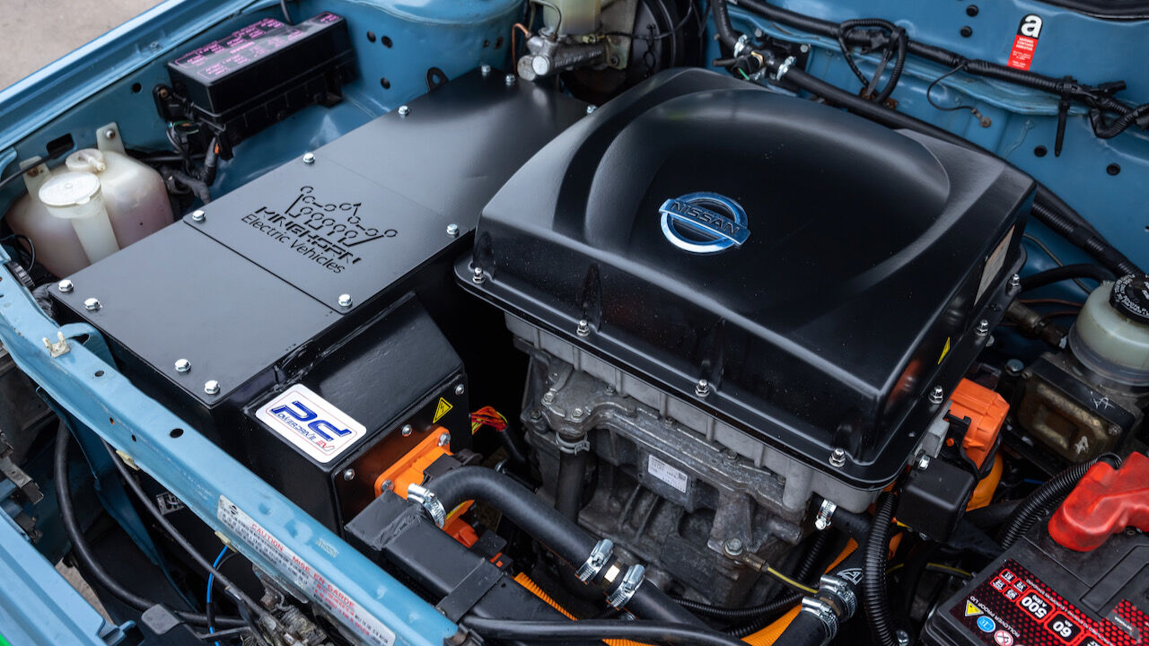 Se trata de un Bluebird totalmente eléctrico, que emplea como base una unidad original de la berlina, pero monta el sistema de propulsión del Nissan Leaf. Sirve para representar el pasado, presente y futuro de Sunderland a través de un trabajo totalmente artesano. Lo primero fue retirar el motor de combustión tradicional, ese bloque de gasolina ligado a la caja de cambios original. El Leaf también se fabrica en Sunderland, así que lo tuvieron fácil para conseguir sus componentes.