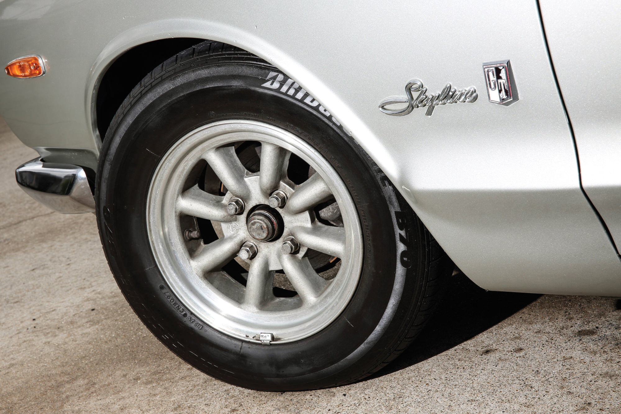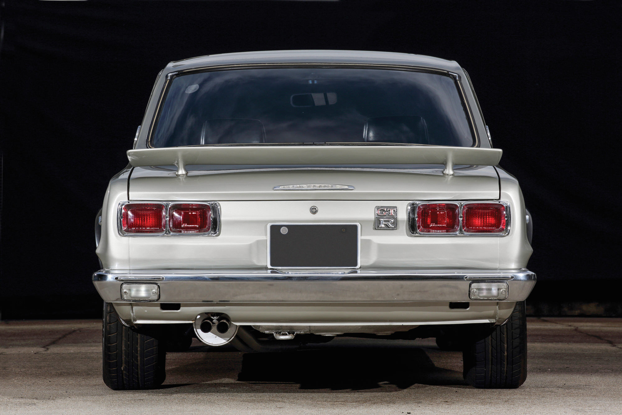 La unidad que ves en las imágenes, subastada en Monterrey por RM Auctions el fin de semana pasado, se registró por primera vez en julio de 1972 en Aichi-Ken, Japón. En 2008, el anterior propietario lo compró a la familia del primer propietario, en estado original, para restaurarlo durante dos años. Además de conservar muchas piezas originales (como la defensa delantera o el raro alerón trasero de fábrica) incorporó llantas ligeras Watanabe y un volante Datsun Racing, muy populares entre los entusiastas de las modificaciones del Skyline.De todos modos, incluía el volante y las llantas de acero negro y el volante originales, al igual que el gato, la rueda de repuesto, y conjunto de herramientas.