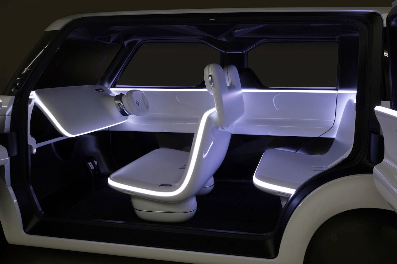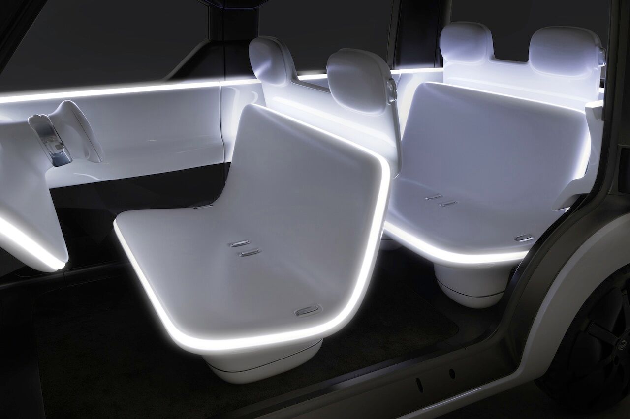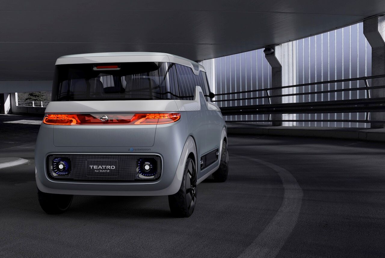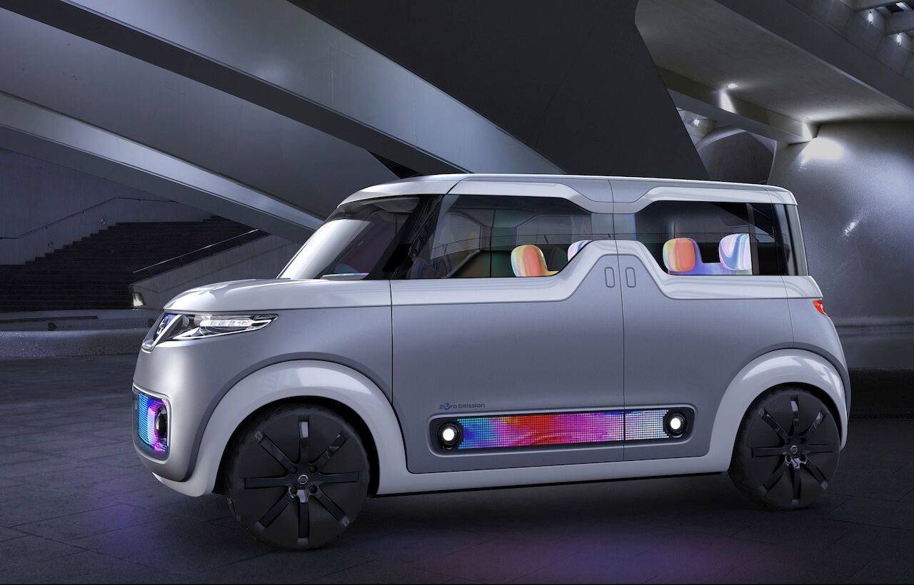 Más allá de eso, el Nissan Teatro for Dayz se ha diseñado para ser un lienzo en blanco, comenzando por su exterior simple de formas cuadradas. Ese lienzo está «pintado» con pantallas integradas LED, que permiten a los ocupantes personalizar el aspecto del coche y compartir experiencias en el vehículo gracias a una cámara a bordo.