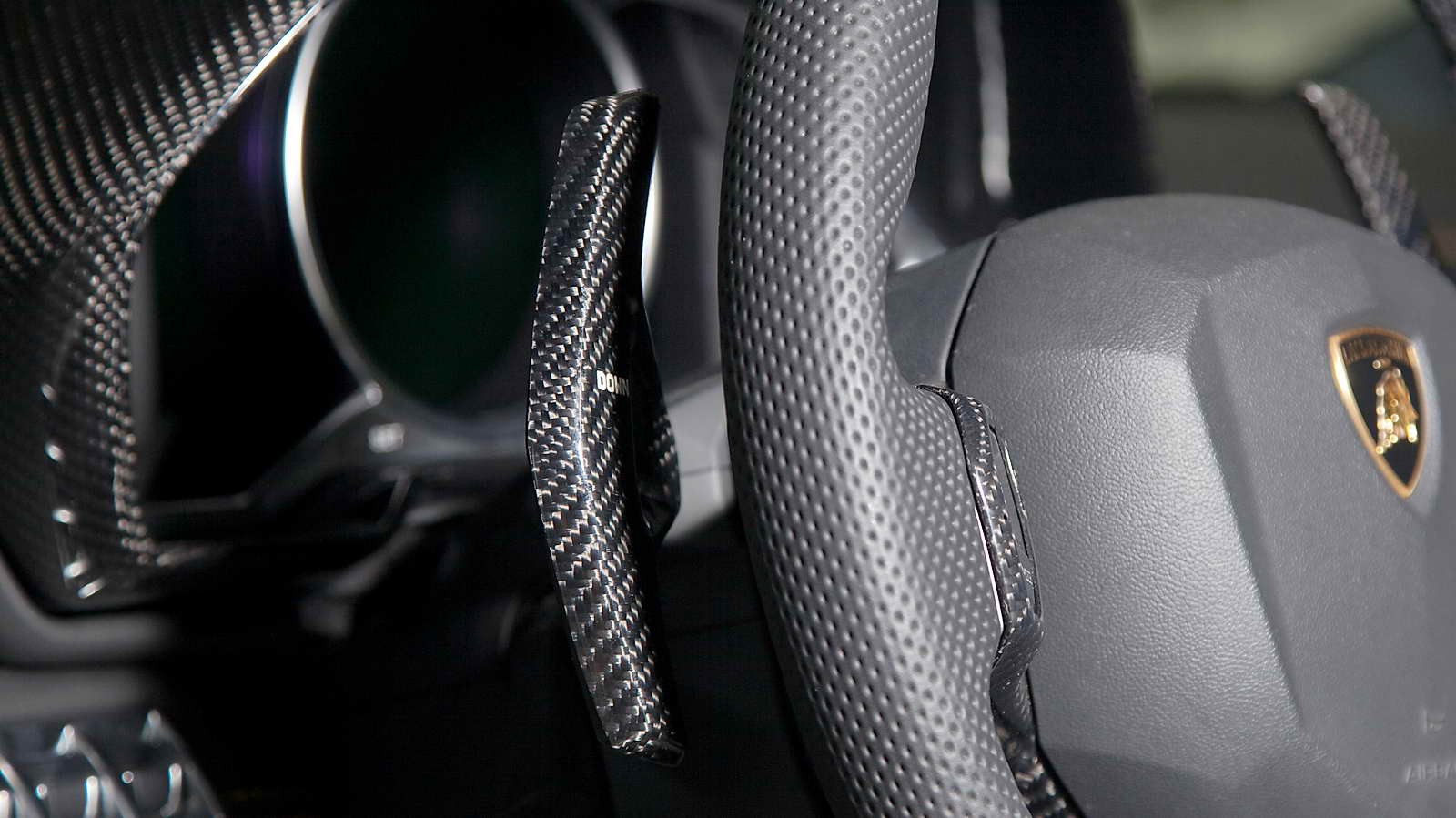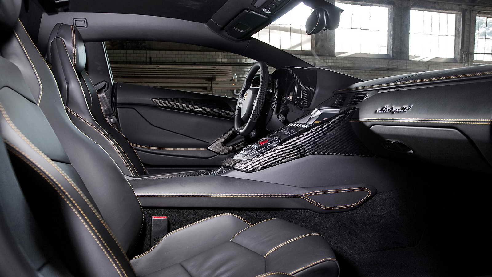 Por último el interior puede ser totalmente personalizado a gusto del cliente, con profusión de fibra de carbono, piel de altísima calidad y otros “elementos nobles”, pudiéndose elegir cualquier tipo de coloración en los mismos, para que congenie a la perfección con el acabado exterior. Incluso la prestigiosa firma suiza REVOX ha desarrollado en exclusiva para este modelo un equipo de audio de altísima calidad que casi, y decimos sólo casi, es capaz de ocultar el poderoso bramido que sale de los escapes de este especialísimo Lamborghini Aventador.