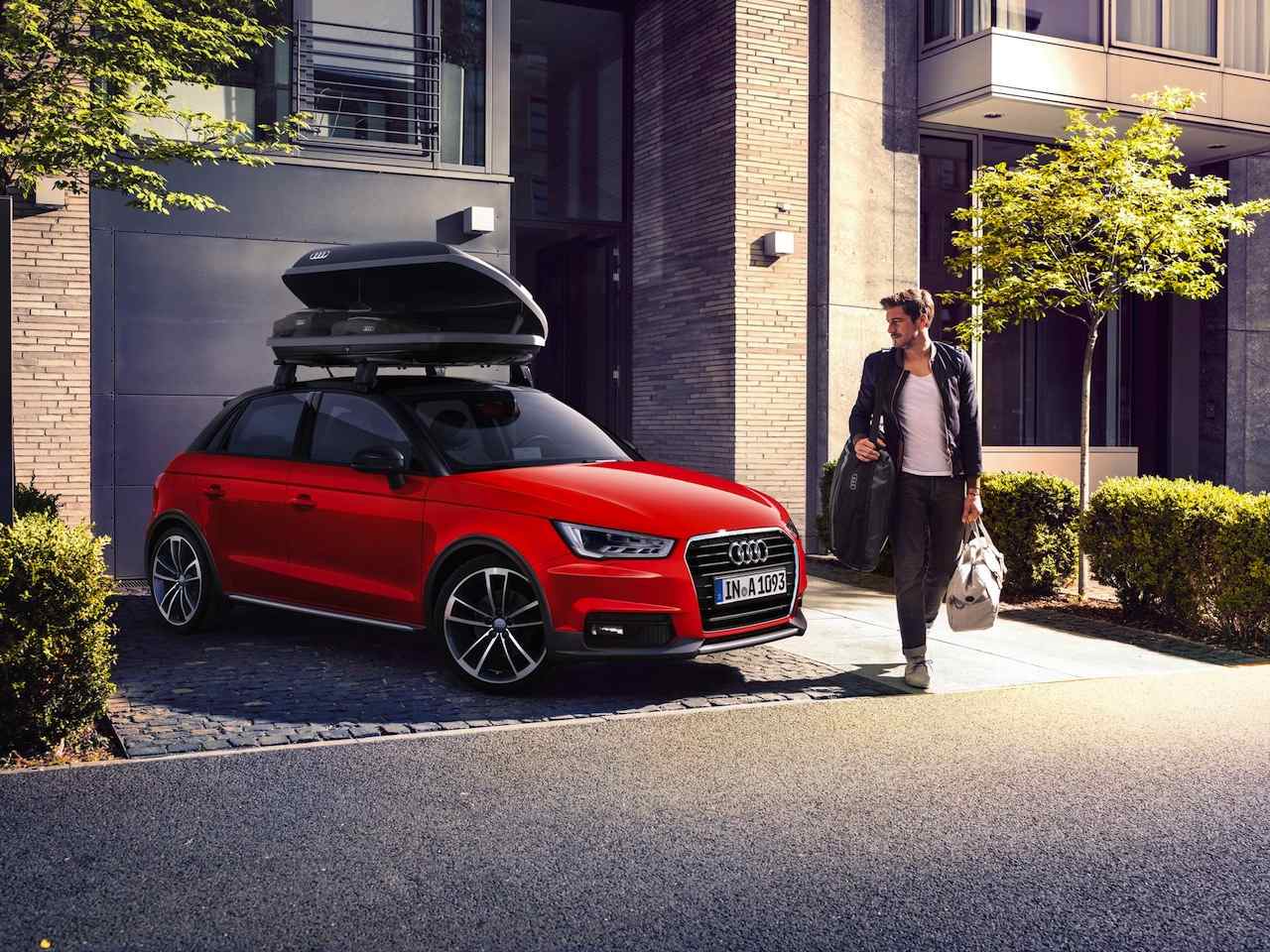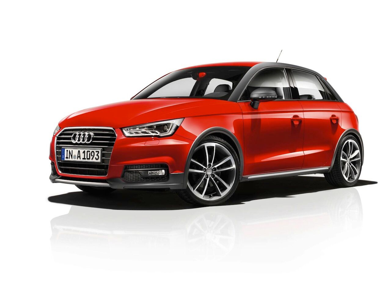 - Audi A1 Adrenalin y Adrenalin2: Ofrecido con todos los motores de la gama. La primera supone una ventaja de hasta un 22% en precio al sumar al equipamiento de las versiones Attraction las llantas de 17 pulgadas, el paquete de estilo negro, pintura del techo o arcos del techo y espejos retrovisores en color negro brillante, salidas de aire en este mismo color y paquete S line exterior. Los Adrenalin2 añaden climatizador, Audi drive select (excepto en los motores 1.0 TFSI y 1.4 TDI), asientos deportivos, sensores de lluvia y luz, suspensión deportiva y tapicería específica. Ambas cuentan con pintura metalizada sin coste para las versiones con cuatro cilindros (y un 45% de rebaja en el resto).