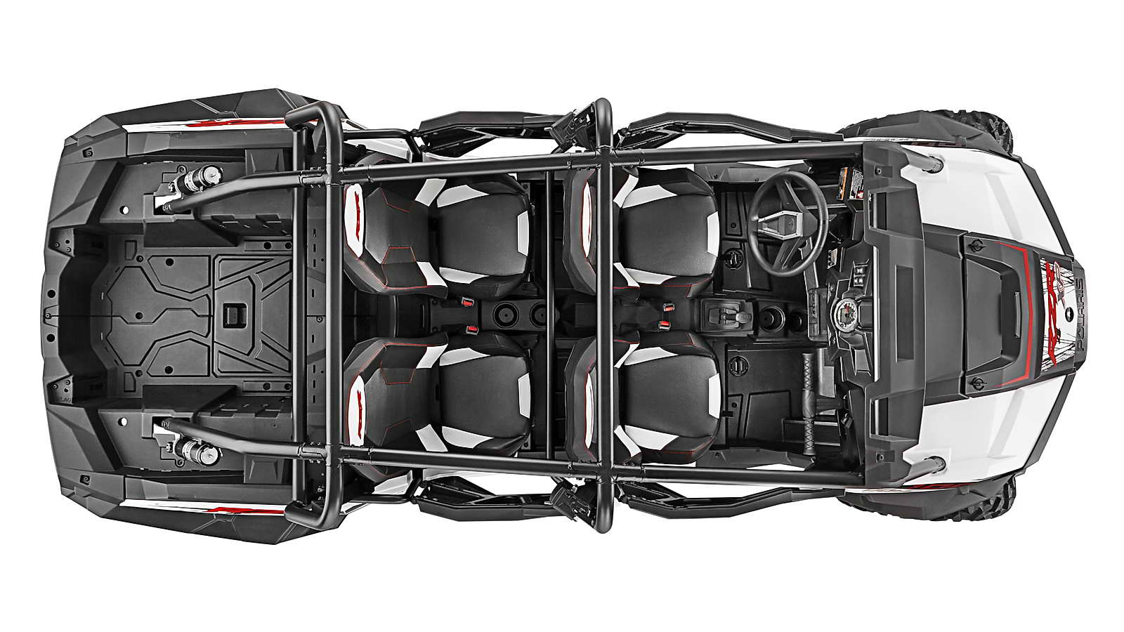 Este nuevo ATV “side by side” (con los ocupantes situados en paralelo, dos a dos) cuenta con un chasis a la altura de la diversión prometida. Es de tipo multi-tubular, para ganar rigidez, estabilidad y seguridad (ejerce las funciones de arco antivuelco). A la vez la mayoría de componentes (incluido el motor) y accesorios se sitúan lo más bajo posible para rebajar el centro de gravedad.