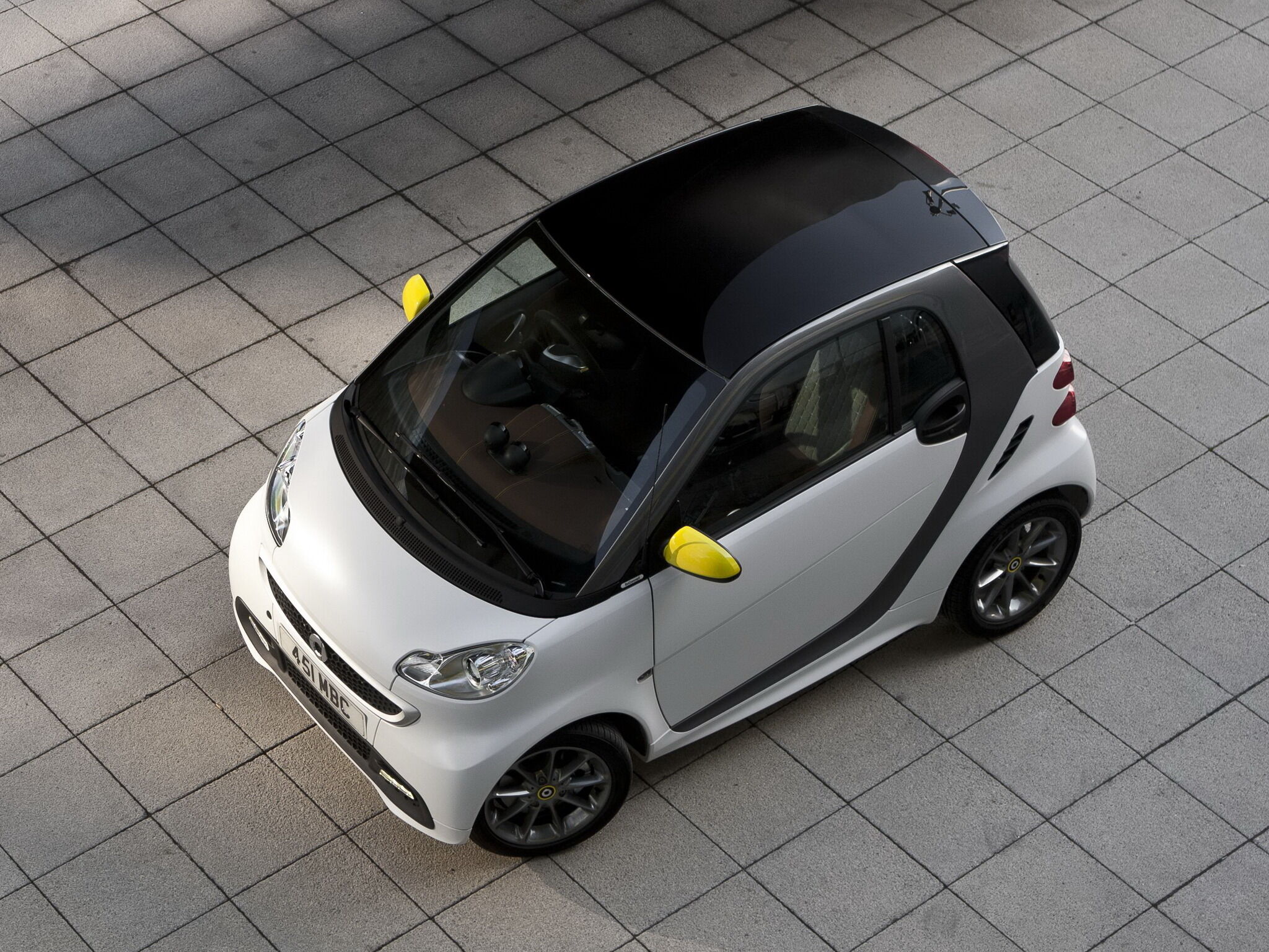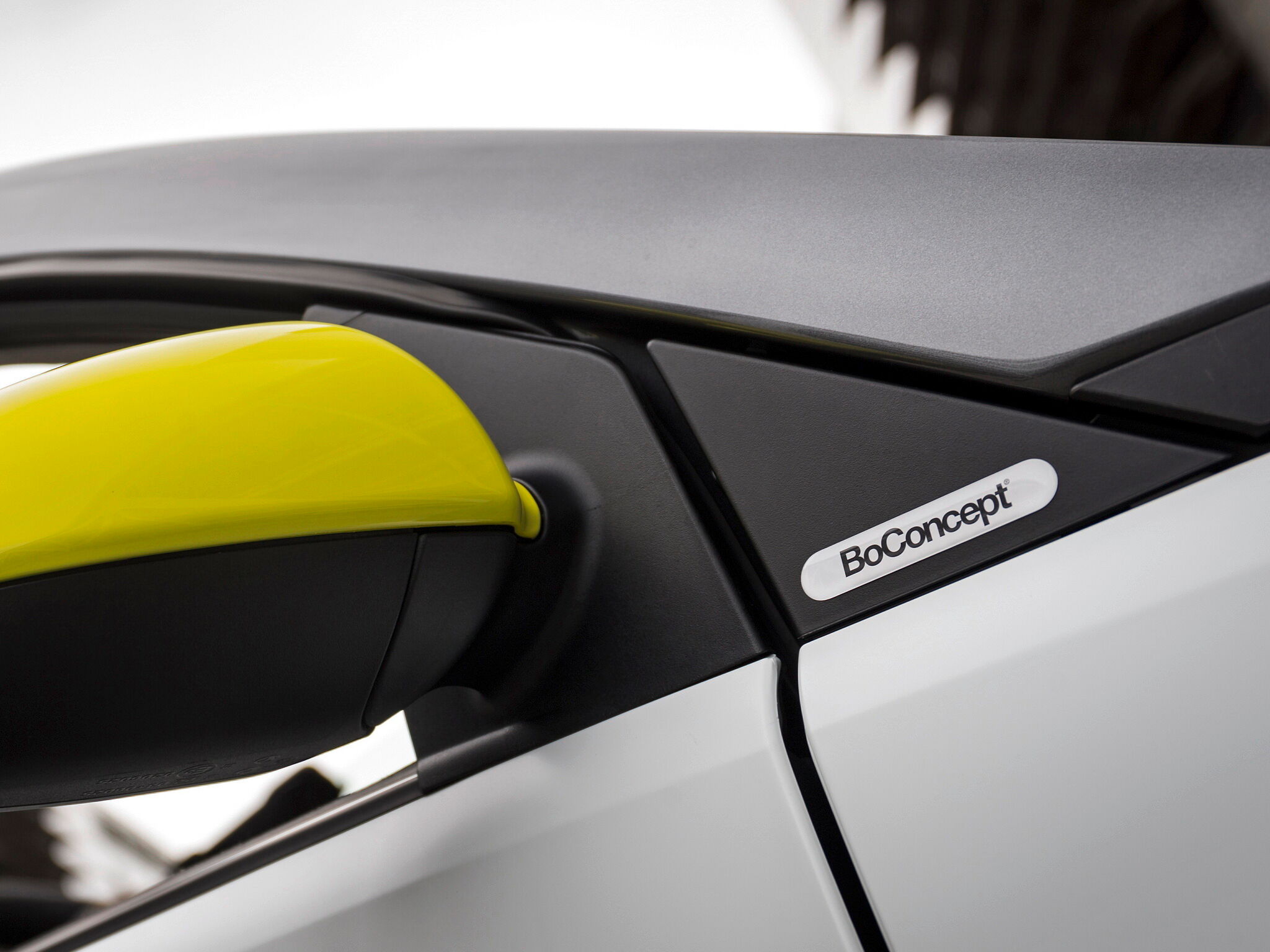 En el exterior, el Smart Fortwo BoConcept cuenta con luces diurnas por LEDS, llantas de aleación en antracita, espejos retrovisores y otros detalles en amarillo Light Lemon, célula de seguridad en antracita brillante y pintura exterior en blanco cristal mate.