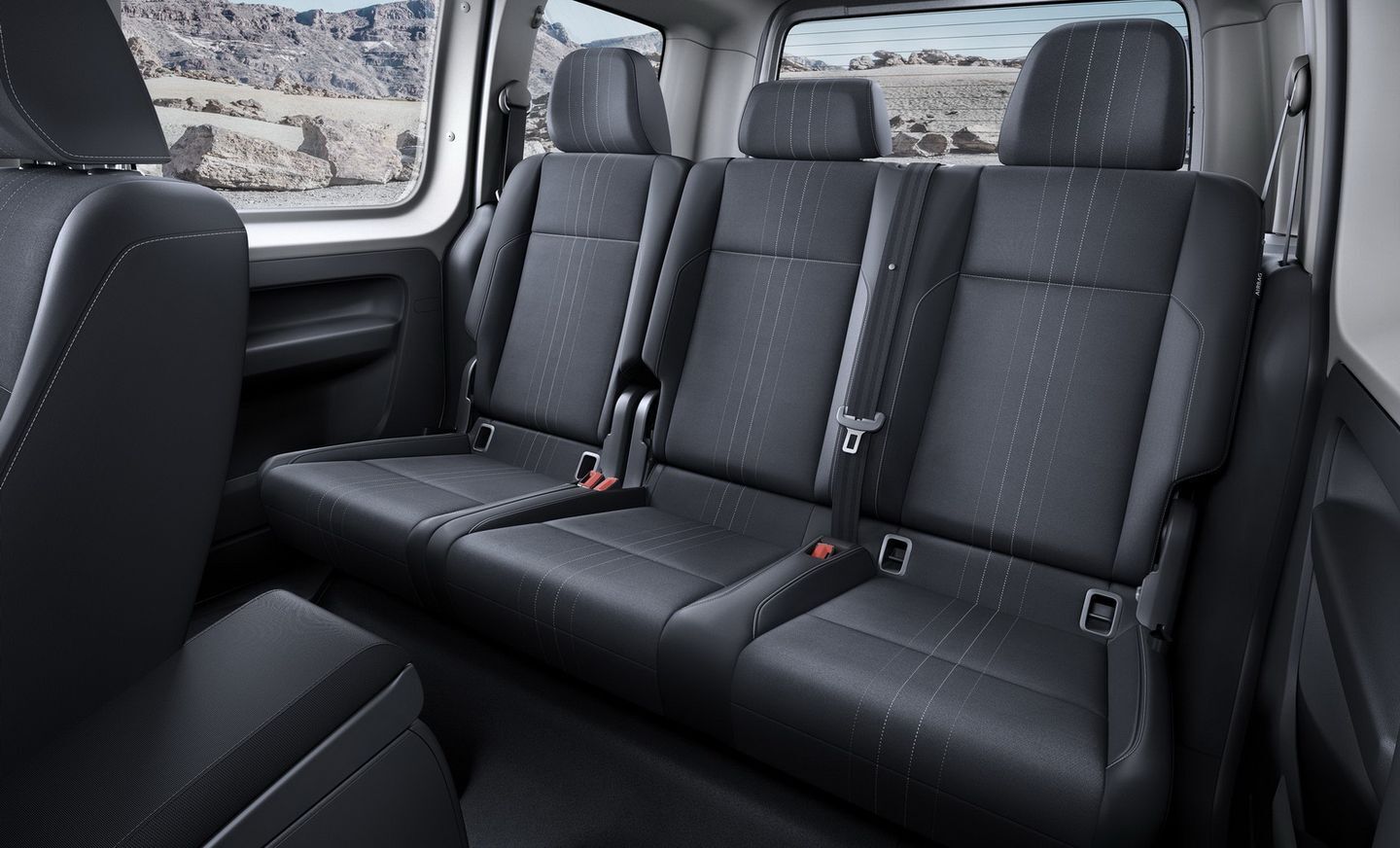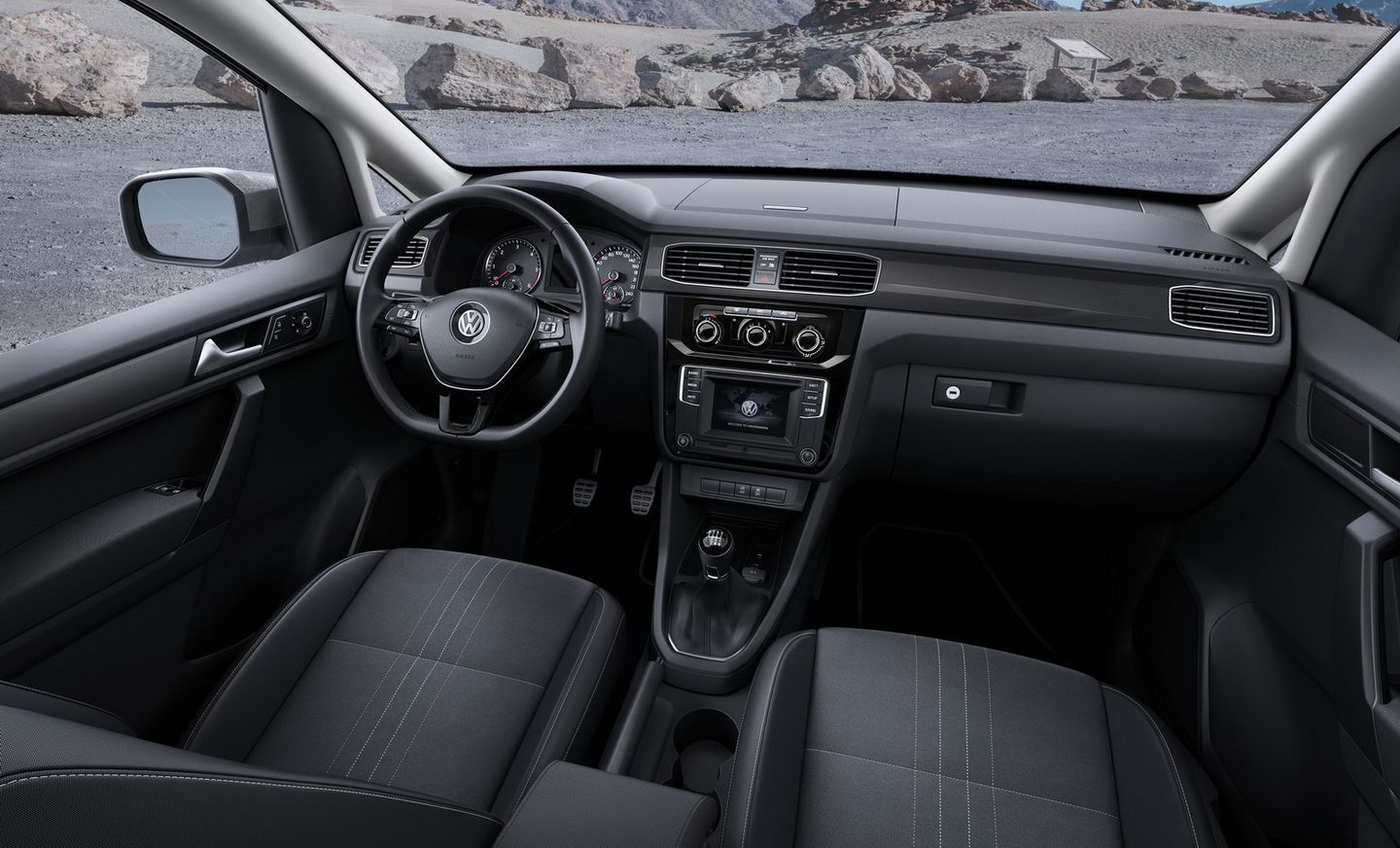 En el interior, el Caddy Alltrack, que derivan del nivel de equipamiento Trendline, cuenta con volante, pomo del cambio y fuelle del cambio tapizados en cuero, así como el tapizado específico para los asientos con los pespuntes en contraste. Las versiones combi incluyen también unas prácticas mesas en los respaldos de los asientos delanteros.